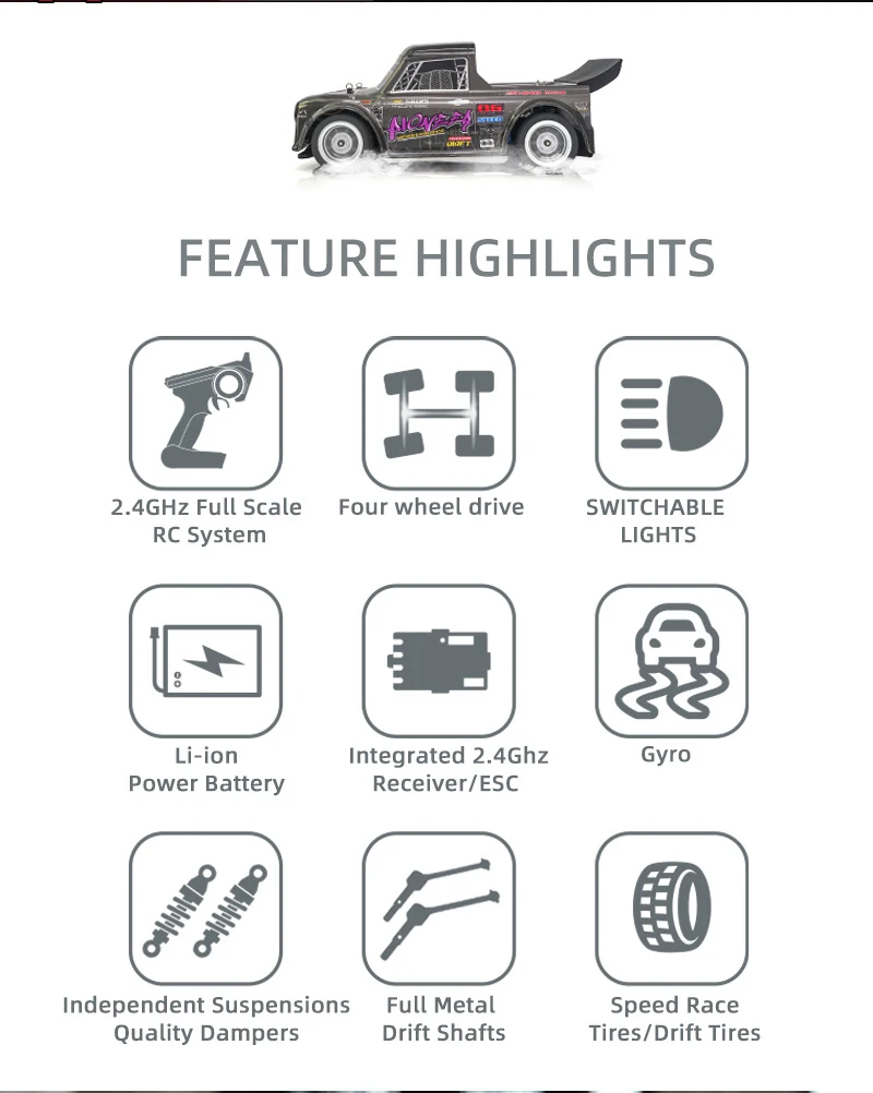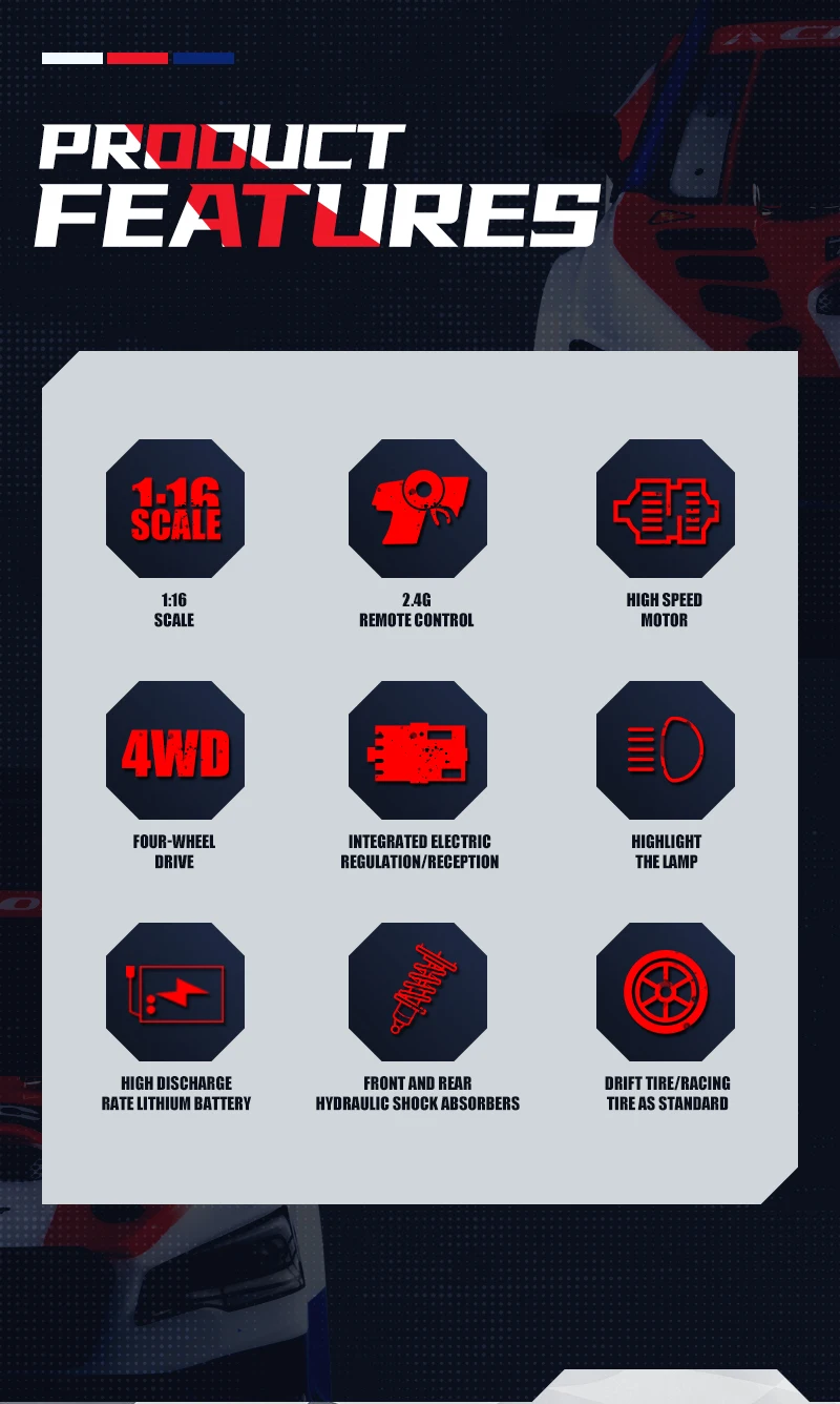 1/16 RC Drift Car High Speed 2.4G Brushless 4WD Remote Control Racing Car toys