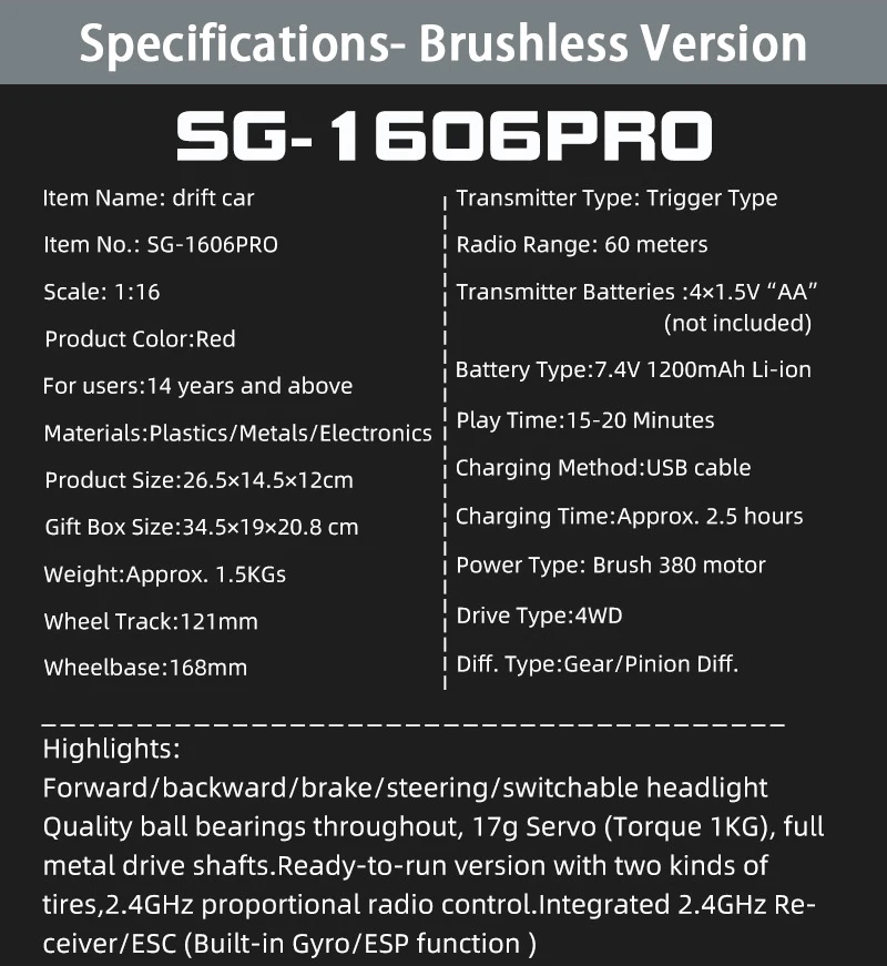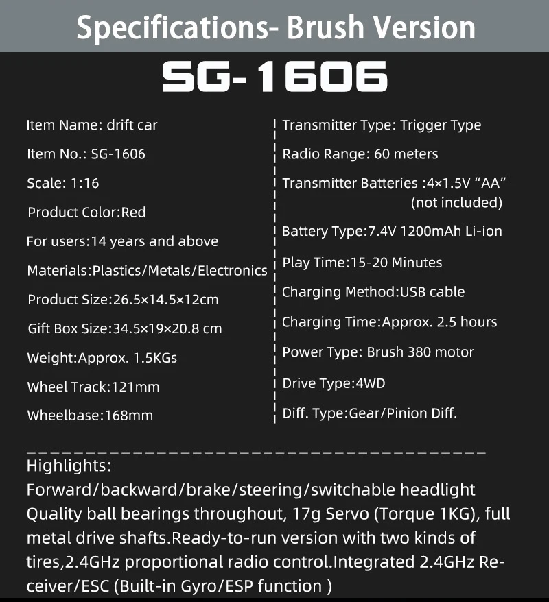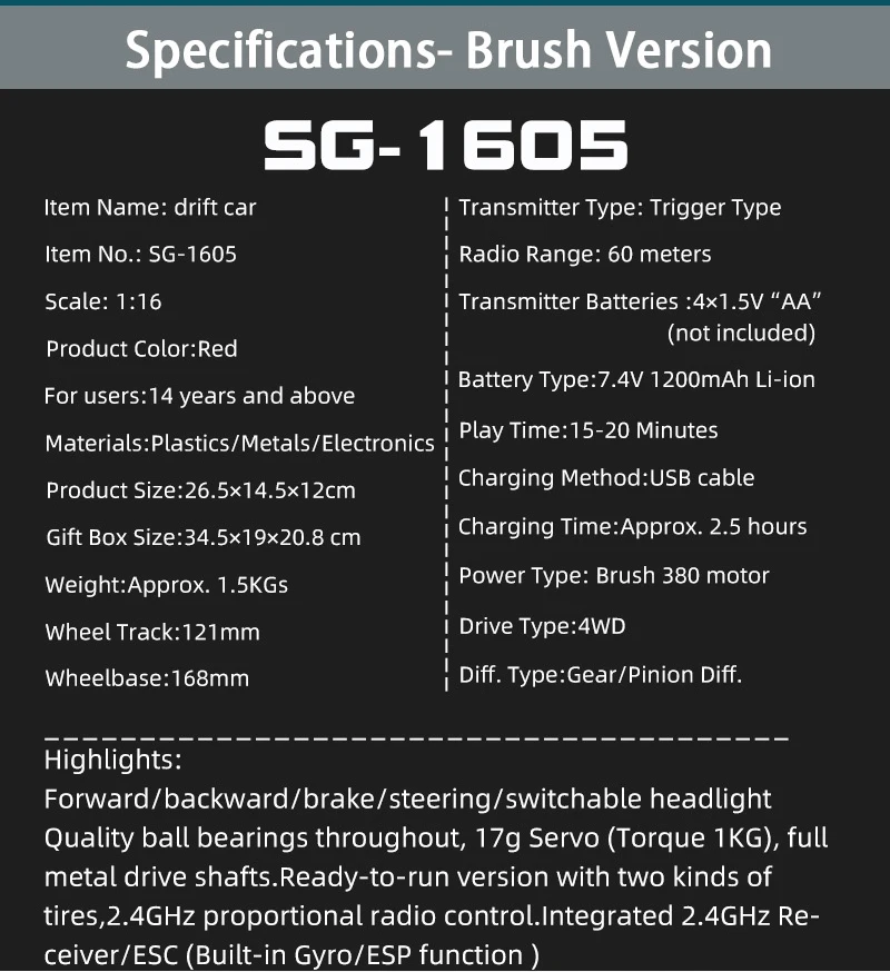 Only For new version SG1607 , come with Metal Hydrulic Shock Absorber and Adjustable Steering ROD