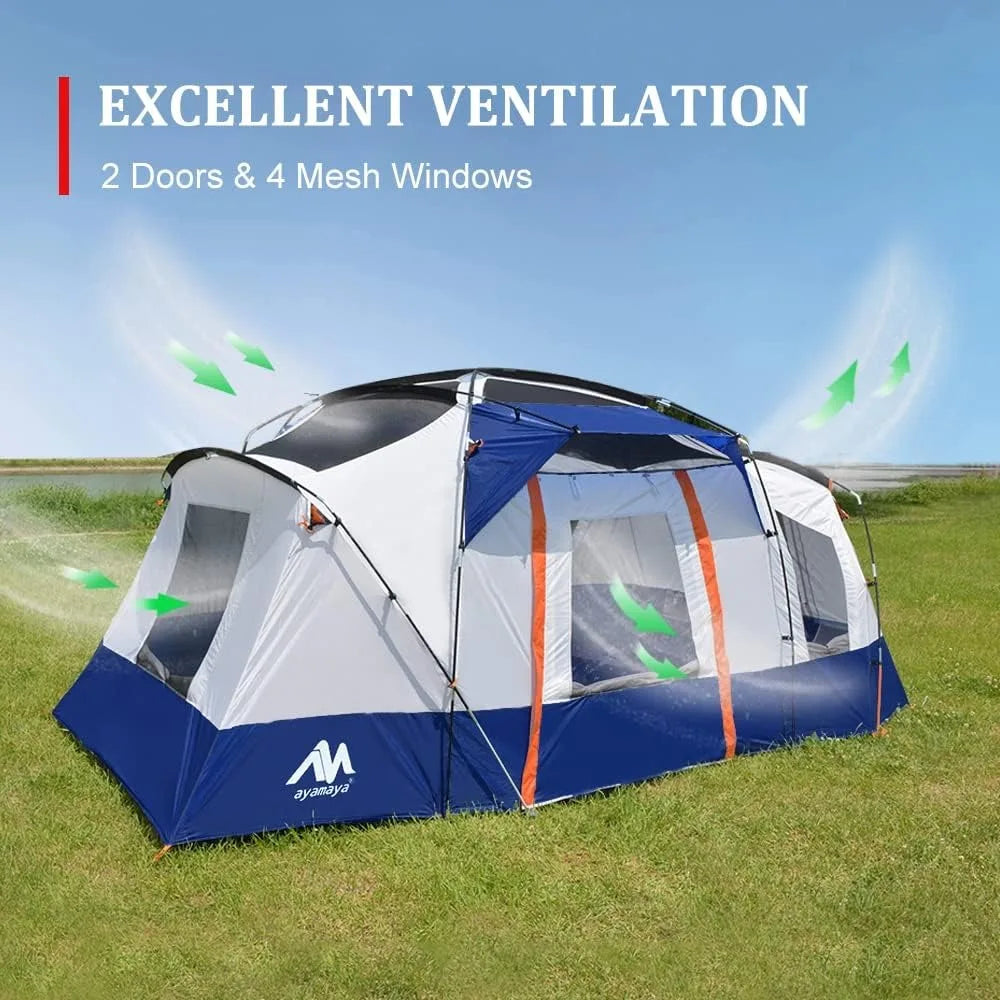 10 Person Tent - Waterproof Multi Room Large Family Camping Tents