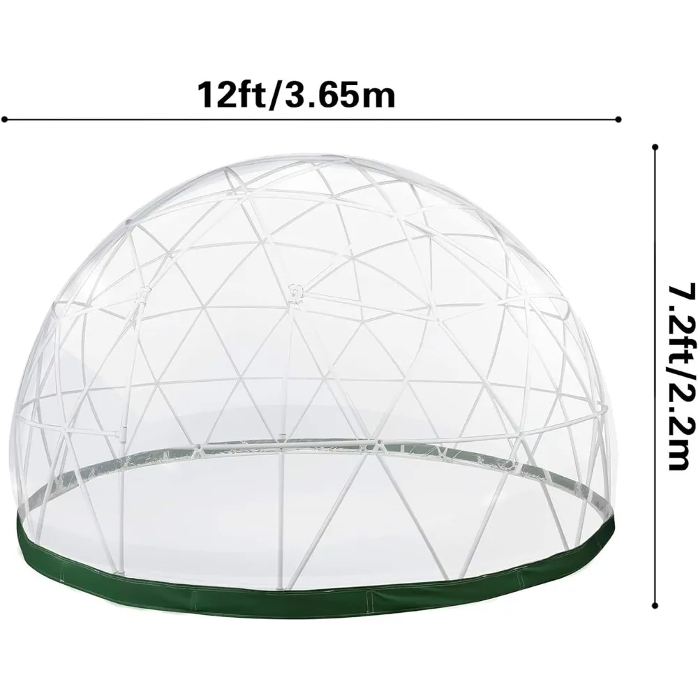 12FT Outdoor Igloo Tent Dome Greenhouse Bubble Tent, Clear PVC Tent