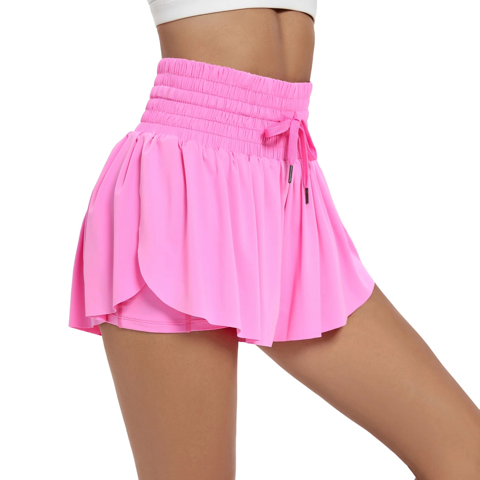 skirt shorts built in spandex underneath, drawstring,high waisted with pockets,elastic waist stretch.
