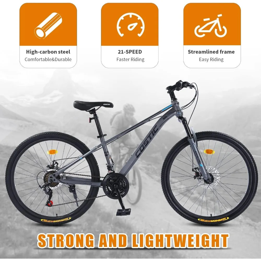 26 Inch Youth/Adult Mountain Bike,21 Speeds,Secure Frame 26 Inch Aluminum Wheels,