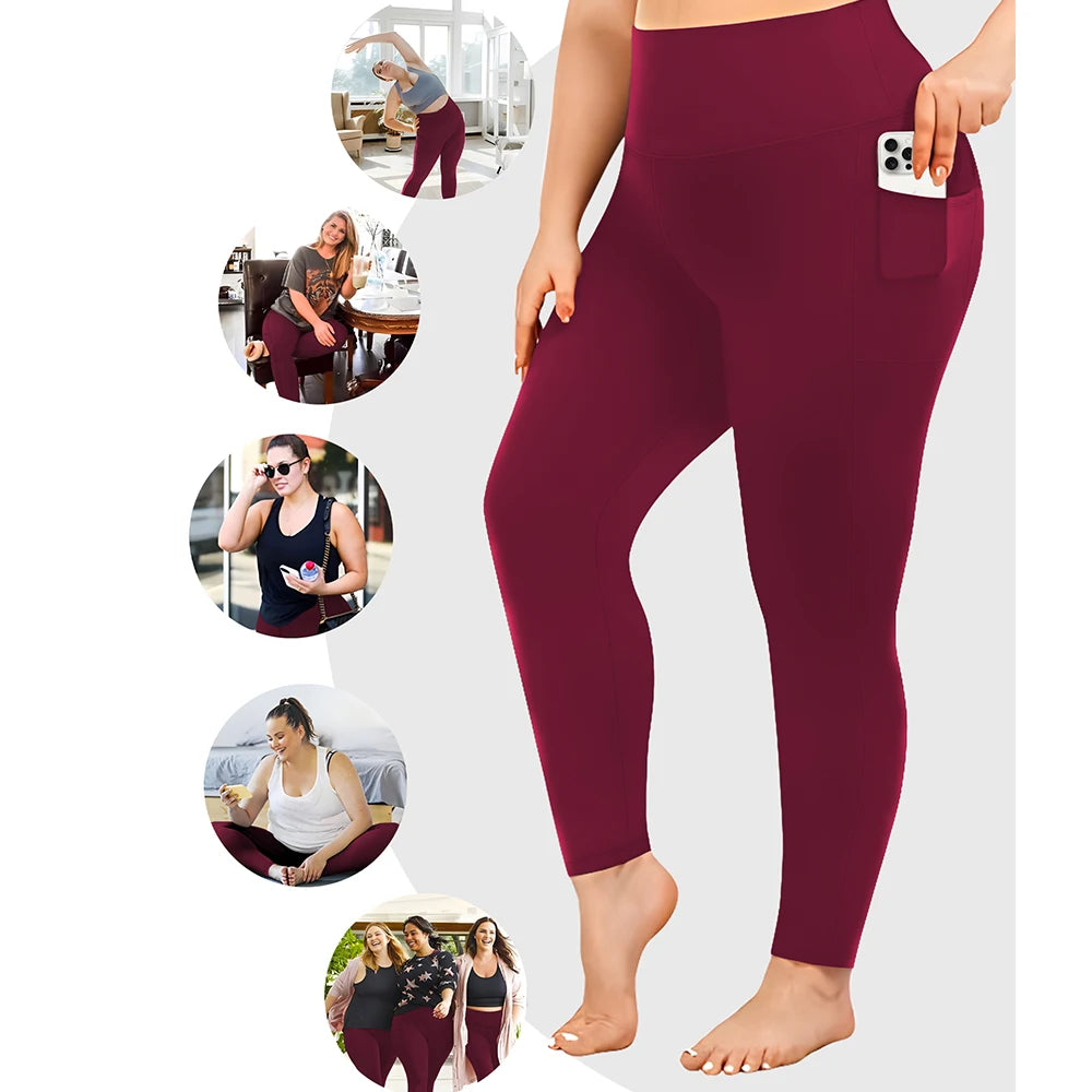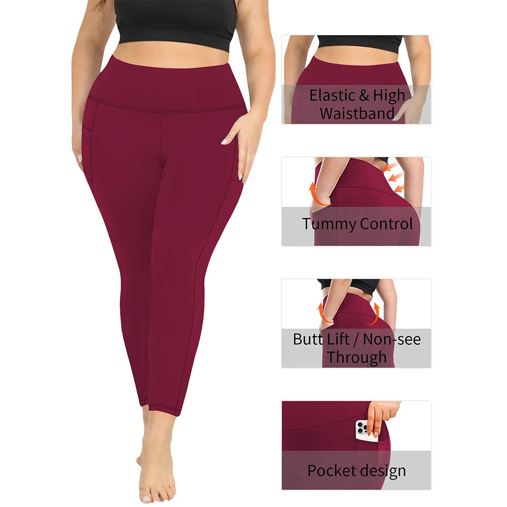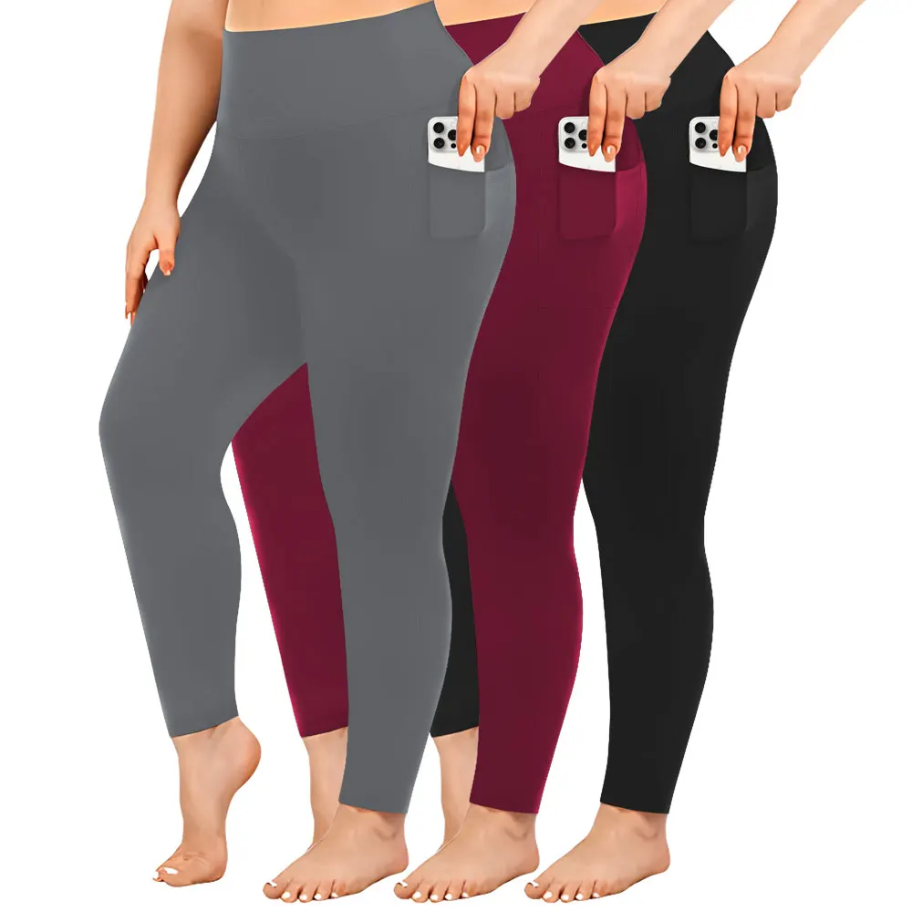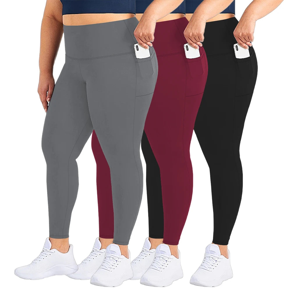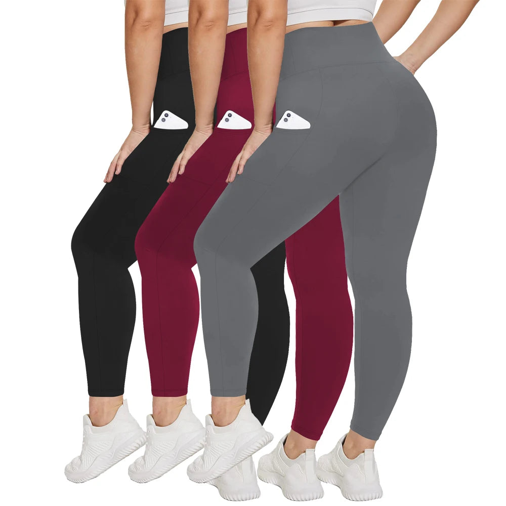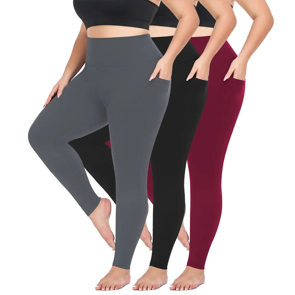 3 Pack Plus Size Leggings With Pockets For Women High Waisted