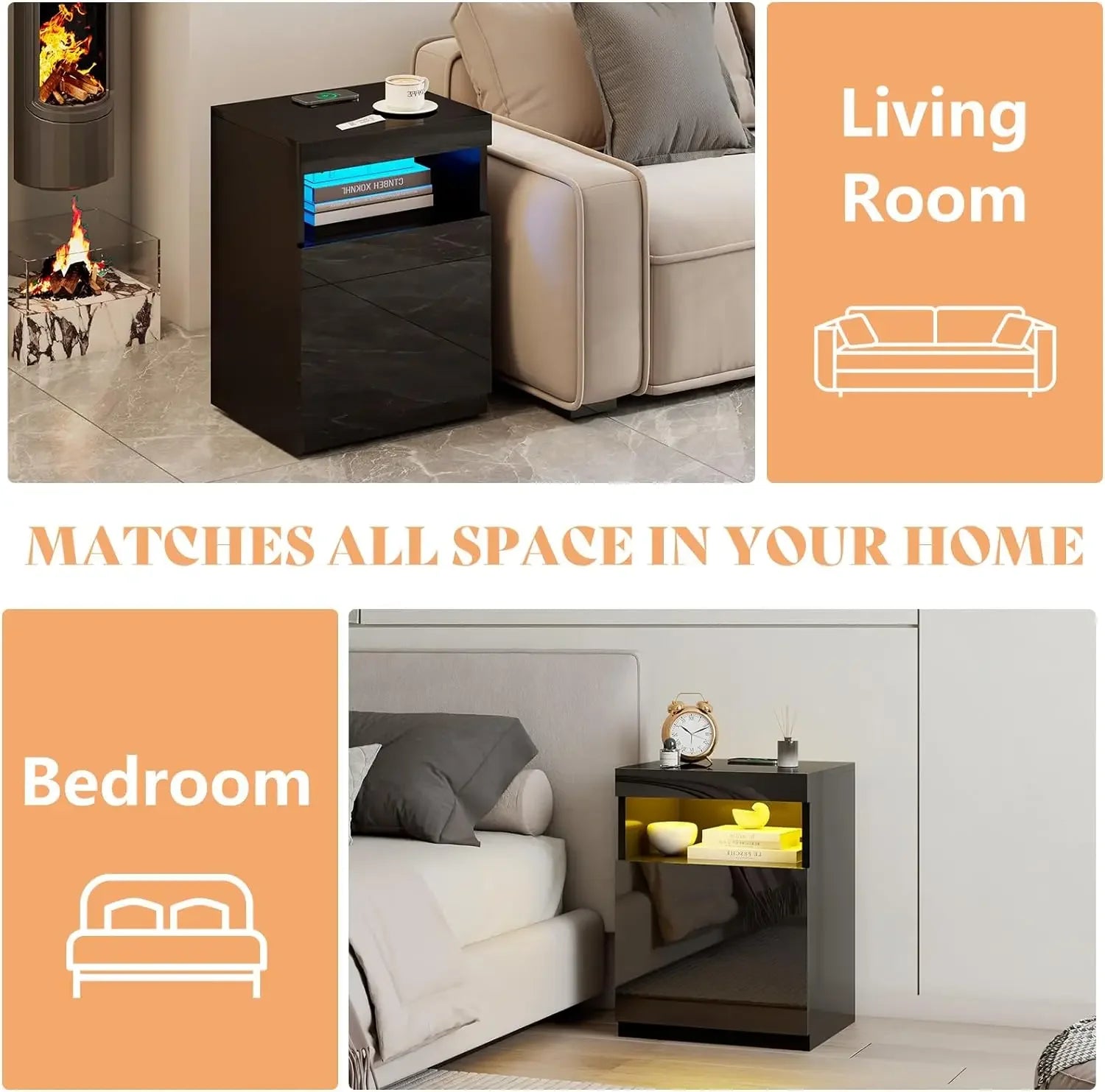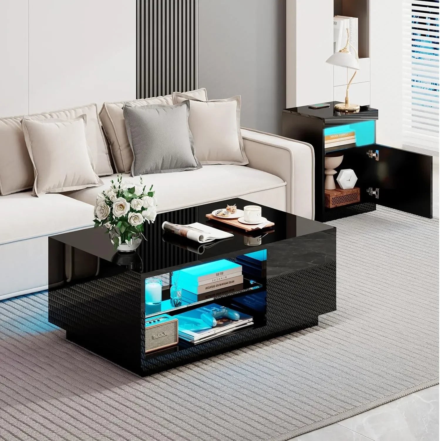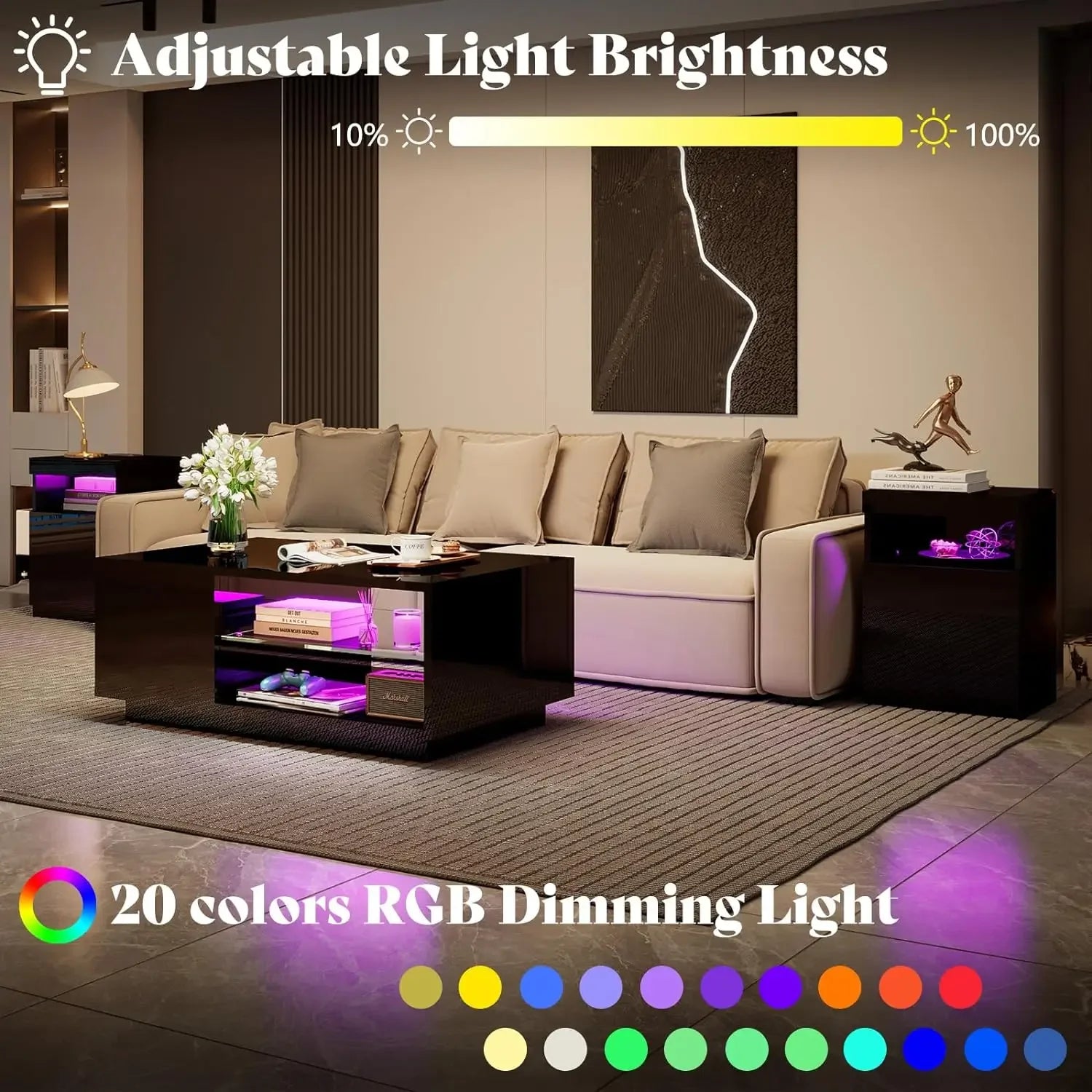 【Multi-function RGB LED Lights 】The coffee table has 20 Color lights and 22 dynamic modes, end tables with RGB lights are equipped with remote and Bluetooth control. Create any home atmosphere you want