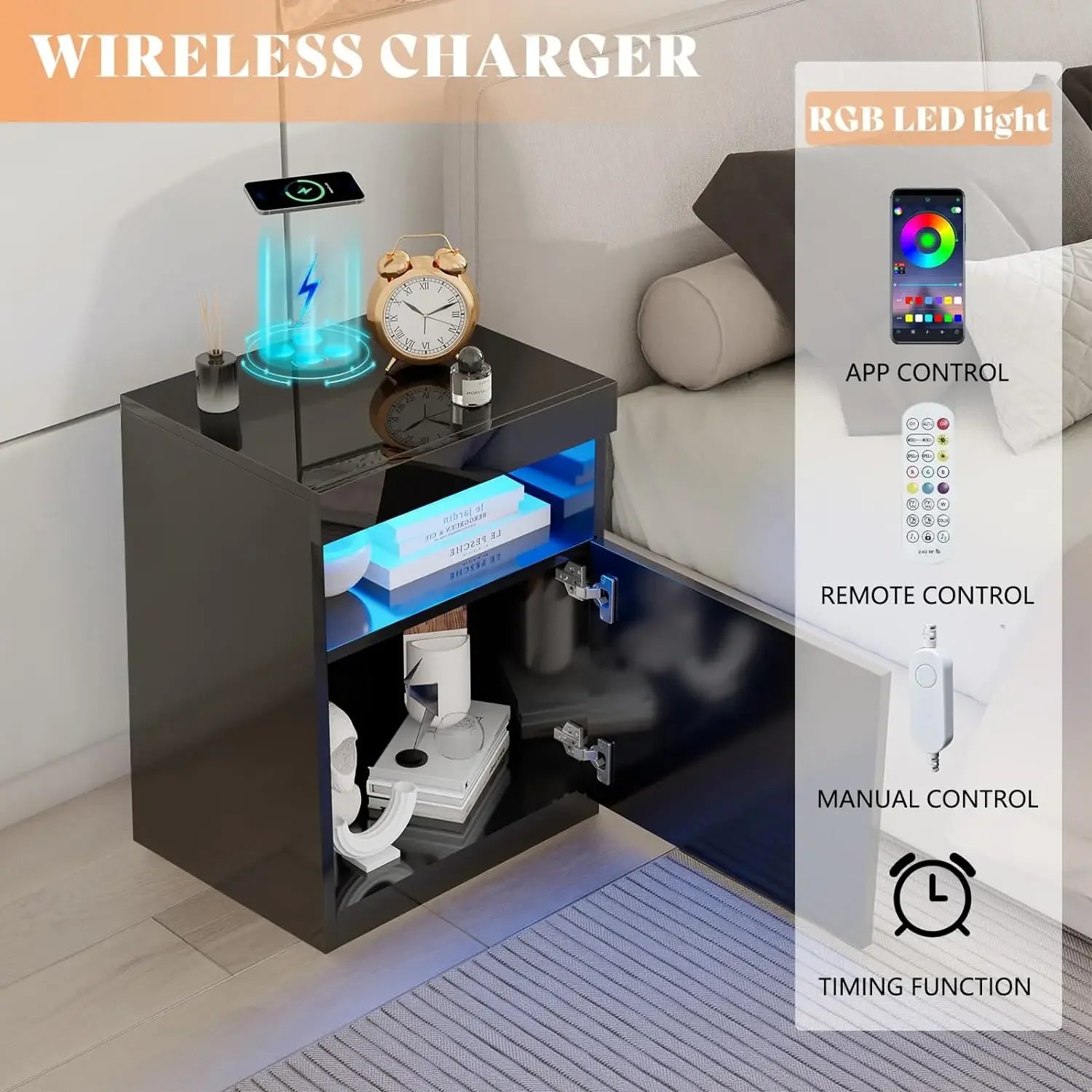 【Wireless Charging Feature】Two side tables with glass tops are stylish and easy to clean, offer wireless charging with a power of 15W, more practical and convenient.