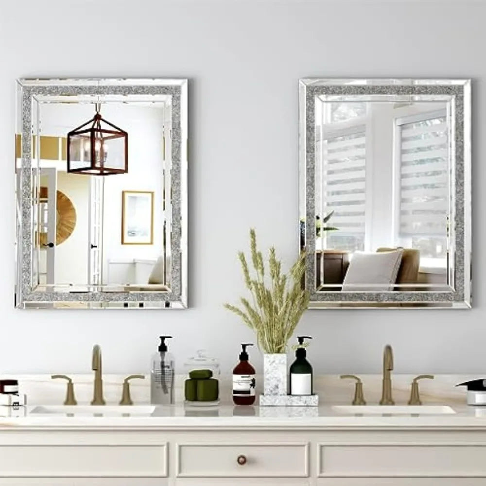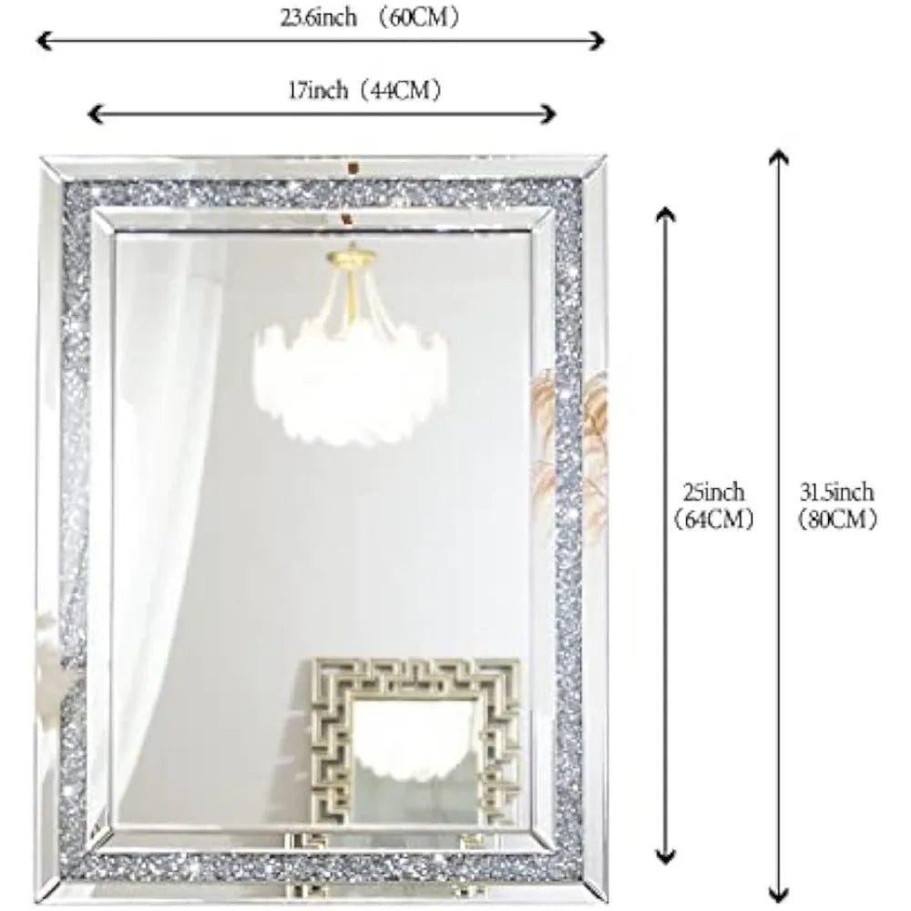 32 x 24 Inches Decorative Crystal Mirrors for Wall Decor, Living Room, Dinning Room Silver