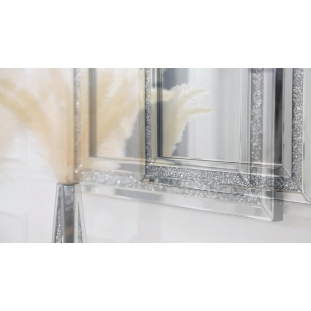 - Luxury Modern Design - This wall mirror decor is design with full of crushed diamond frame, and all the glass is beveled provide 3D and sleek look.