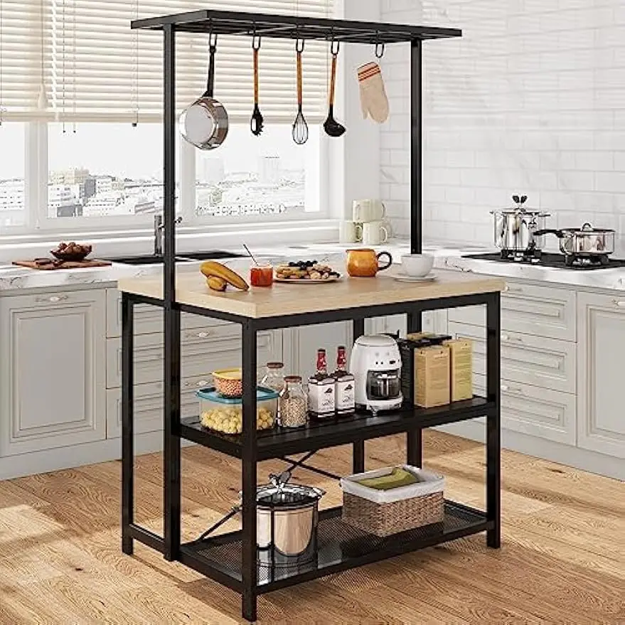 - [3 Tier Storage& 5Hooks] Spacious open shelf provide plenty of room to store your pots, pans, kitchen utensil, microwave, toaster, & other small kitchen appliances. Additionally, the 5 S hooks are perfect for hanging cooking tools, spoons, pans, or kitchen towels.