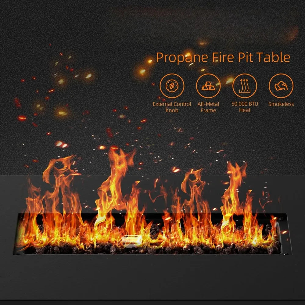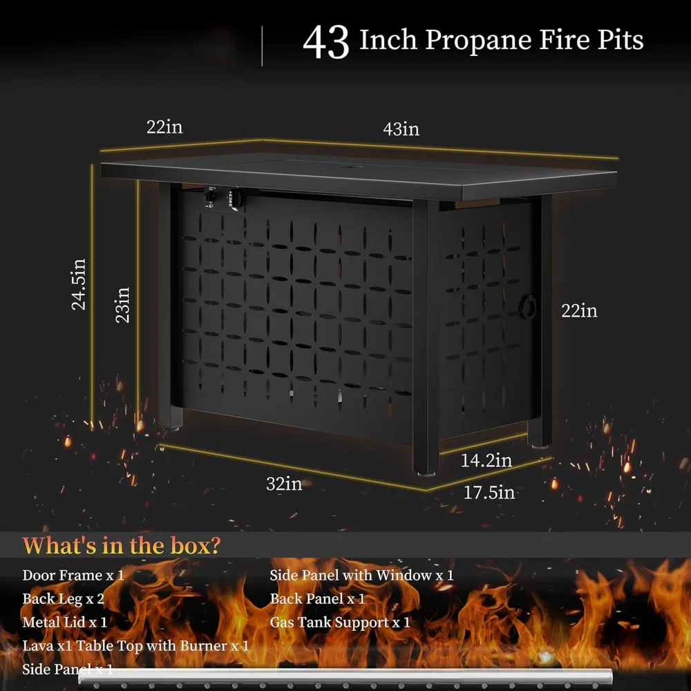 43 Inch Fire Pit Table with Lid & Lava Rock for Garden, Yard, Camping,etc.