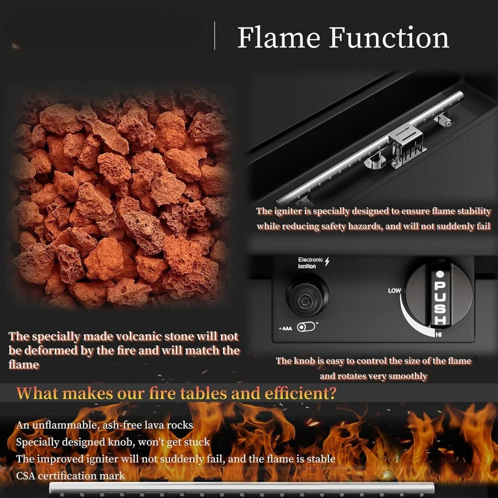 - Durable and Efficient: Constructed from high-temperature-resistant materials, the outdoor gas fire pit boasts durability and stability, even in harsh outdoor conditions. Its exquisite craftsmanship and design ensure stable and long-lasting flames, allowing you to enjoy the warmth and joy of the fire pit for extended periods.