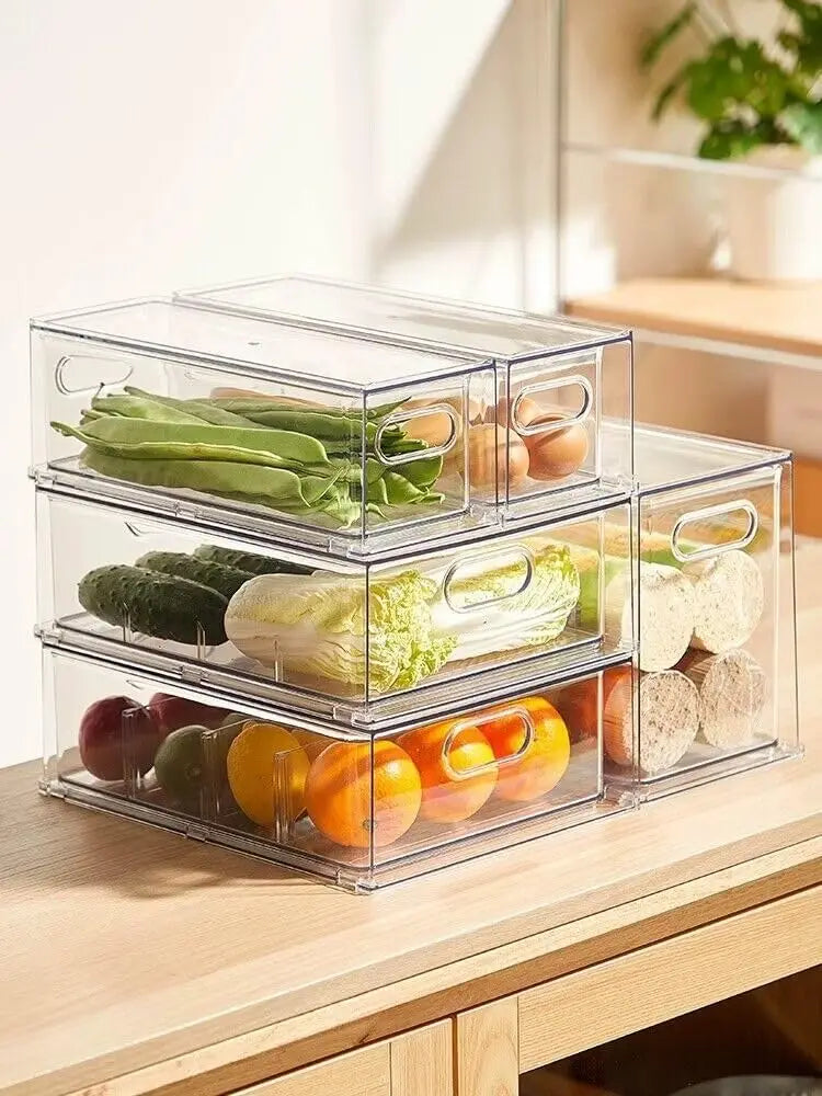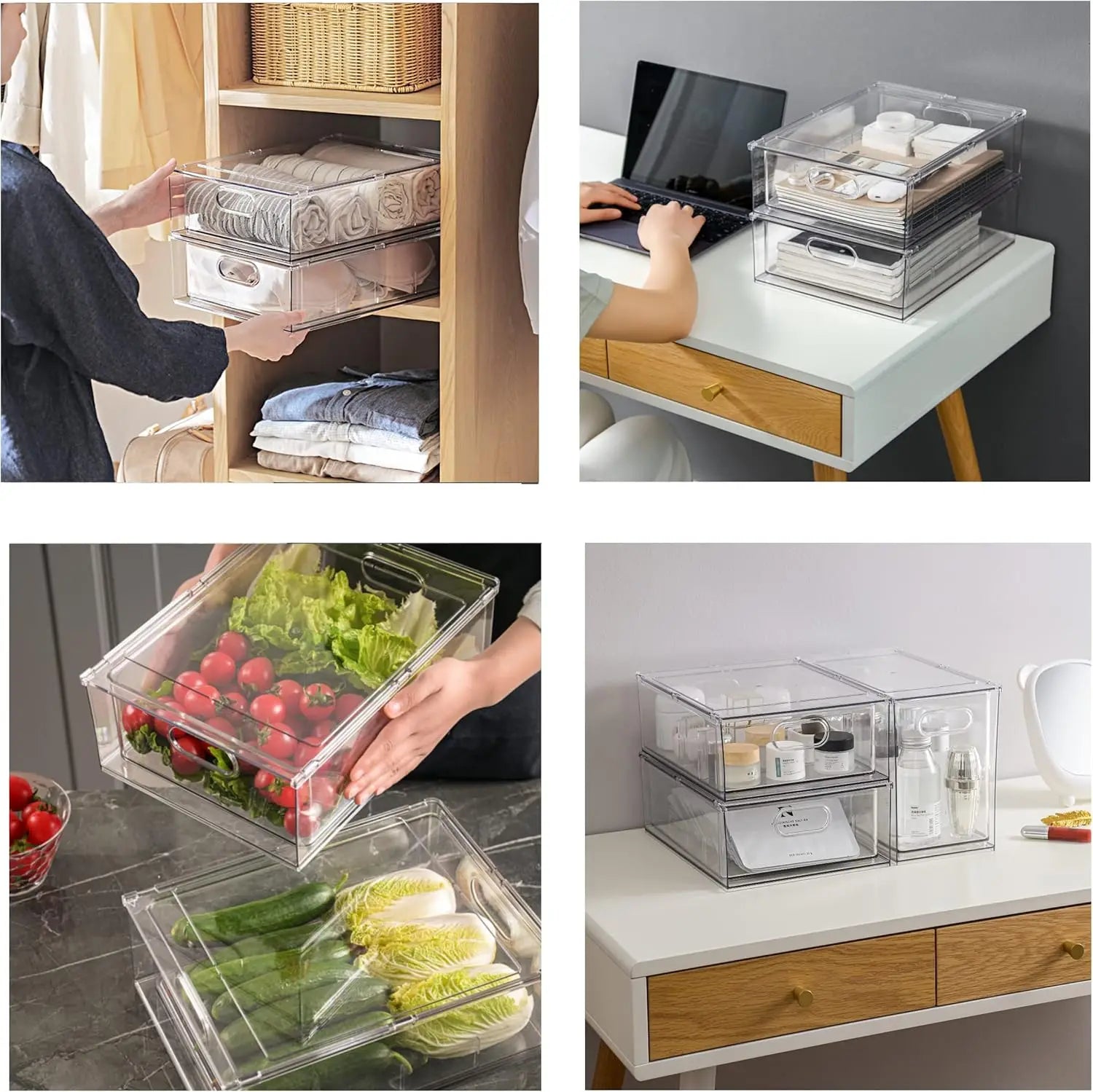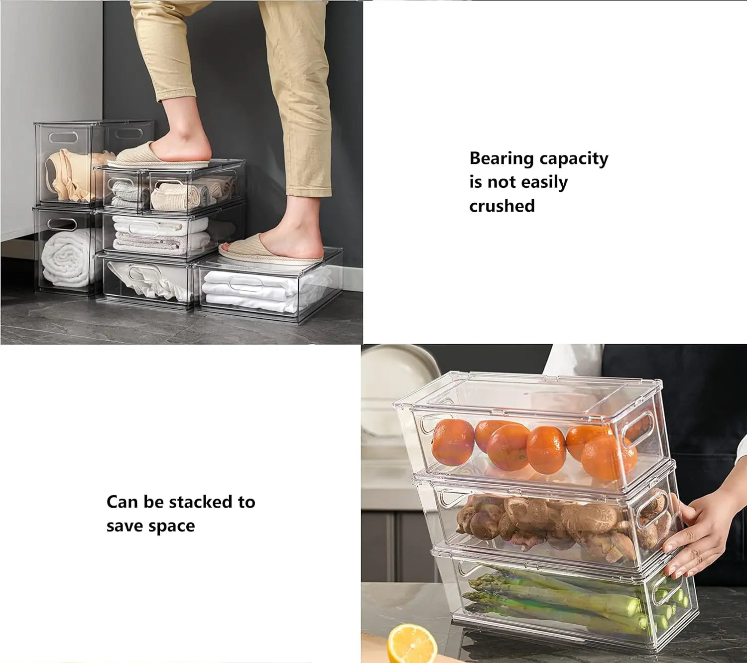 4pack Stackable Refrigerator Organizer Bins with Pull-Out Drawer