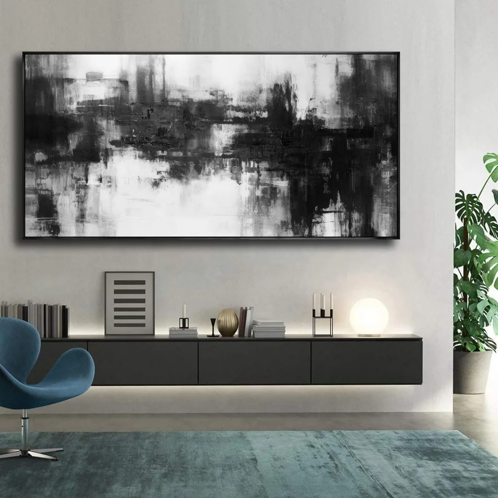 Abstract Wall Art Large Size Framed Home Artwork Decor Black and White