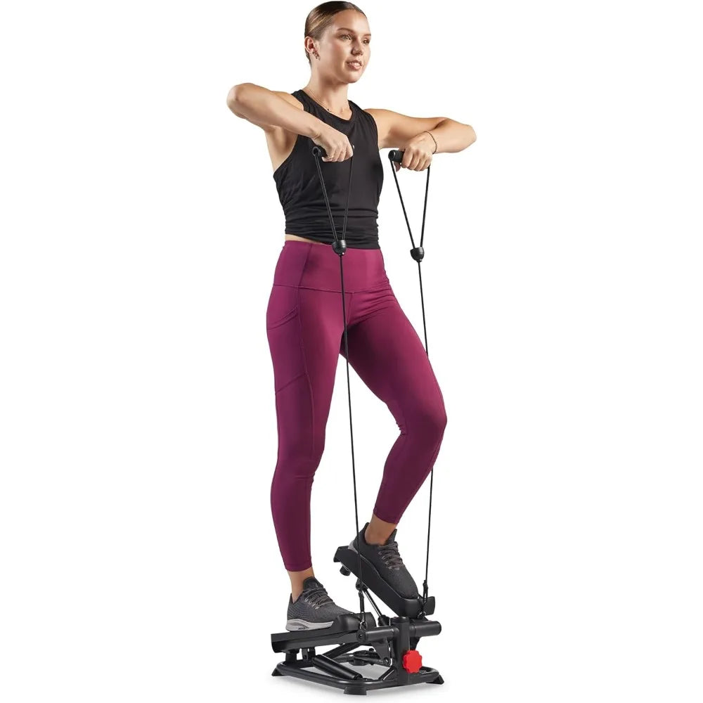- 【CUSTOMIZABLE WORKOUT EXPERIENCE】Tailor your workout to your desired intensity using the adjustable hydraulic step height. Additionally, you can personalize your arm workout with the included bands. Achieve a full-body workout for any fitness level.