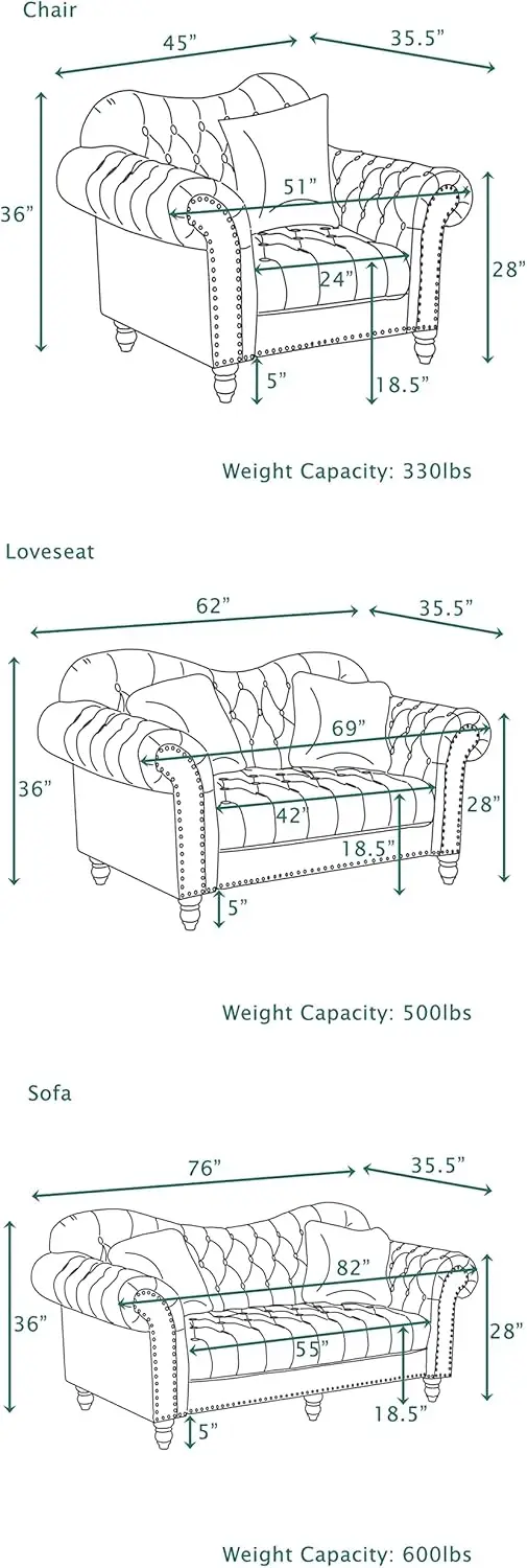 Chesterfield Sofa, Chair and Loveseat for Living Room Furniture Sets,