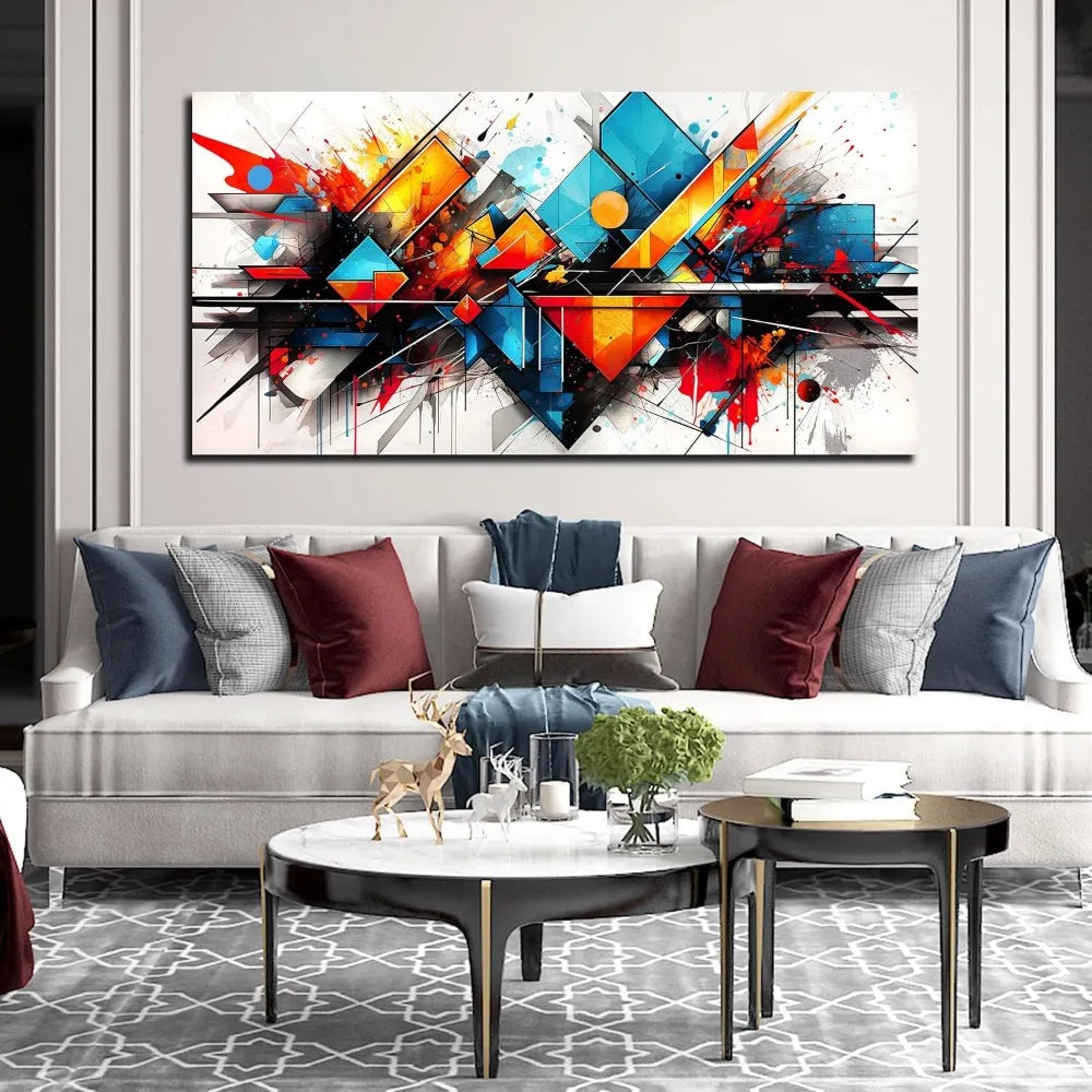 Colored wall art, used for large-sized living rooms - Abstract canvas art -