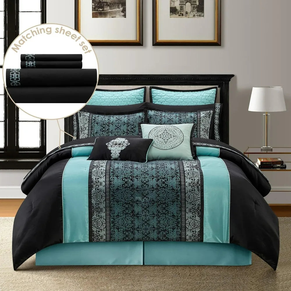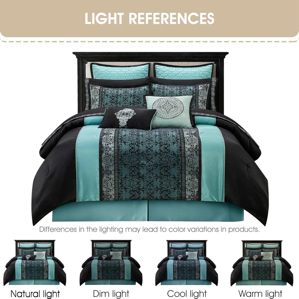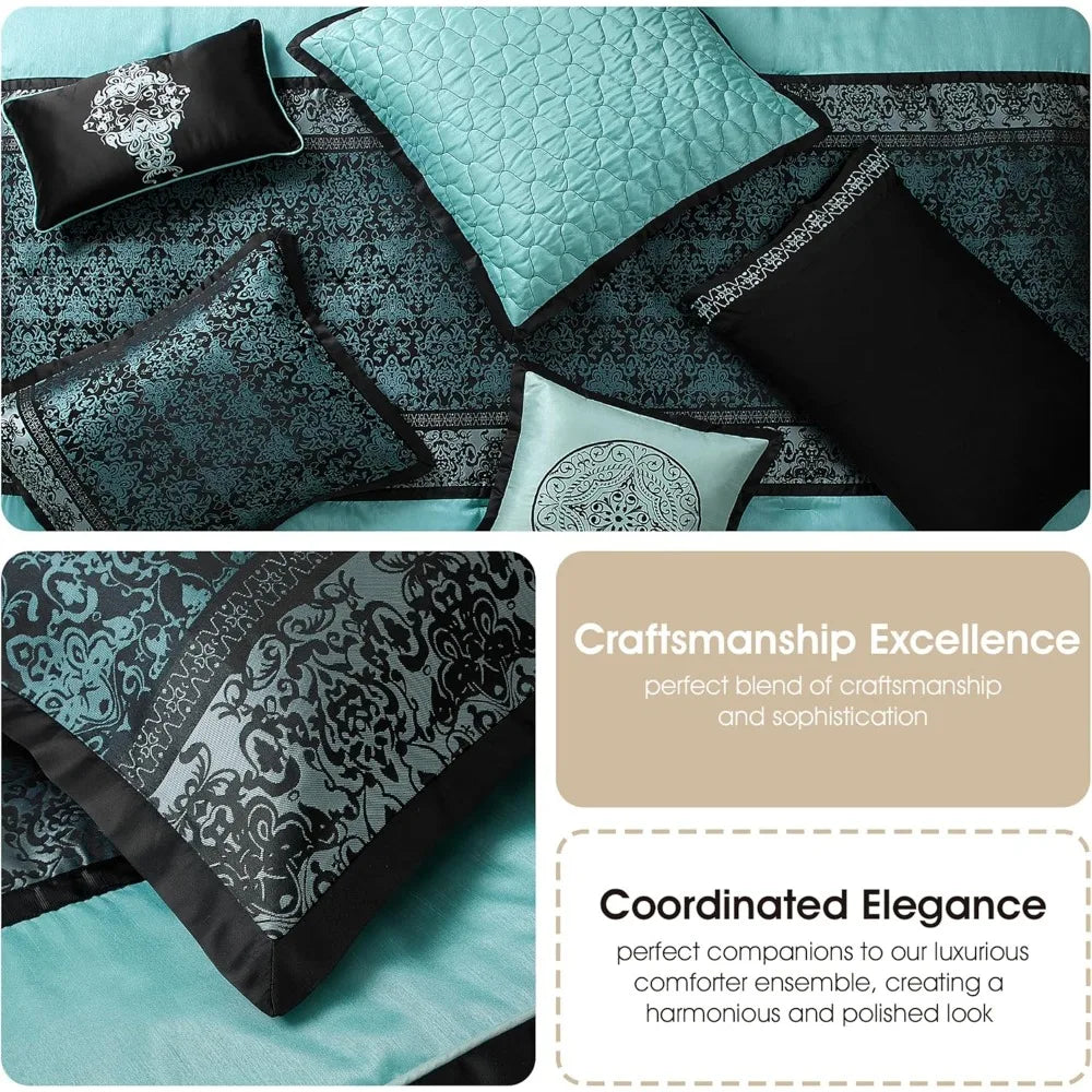 - [Exquisite and Exclusive Design] Give your bedroom a cozy and elegant ambiance with this beautiful comforter set. The jacquard woven fabrics have a soft shimmer with an elegant Moroccan pattern. Beautiful coordinated fabrics provides a natural sheen finish that is also wrinkle resistant and colorfast.