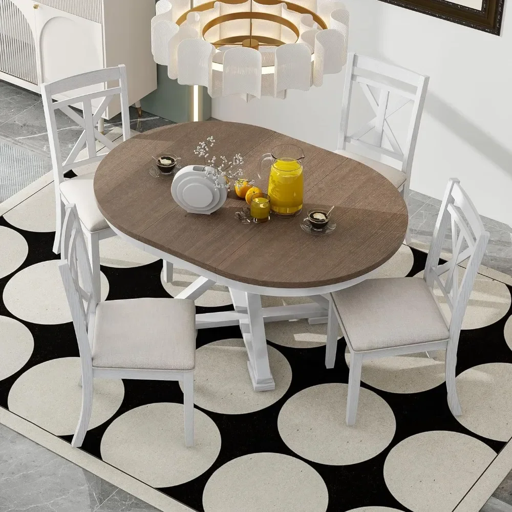 - [Extendable Dining Table for 4-6] The round dining table comes with a 12-inch leaf that creates an oval dining table, which is used to accommodate more people and for different lengths of use. The total length of the dining table is 54 inches and 42 inches with the boards removed. You can switch the table back and forth between round and oval shapes by inserting or removing leaves as needed. The adjustable design makes your daily life easier.