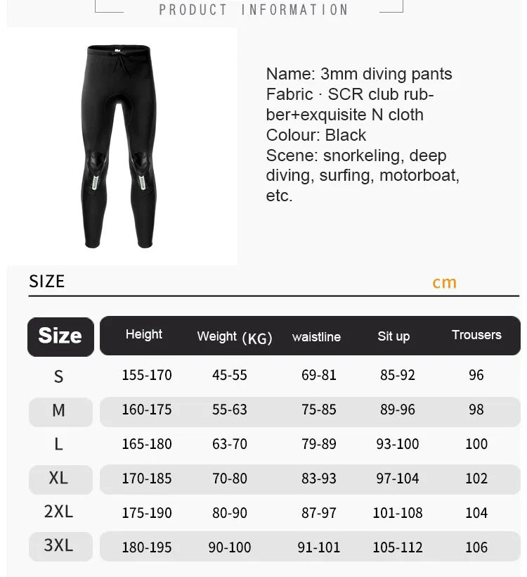 Diving Suit for Men Women Wet SUIT Pants Swimwear Black Keep Warm Black Surfing Snorkeling