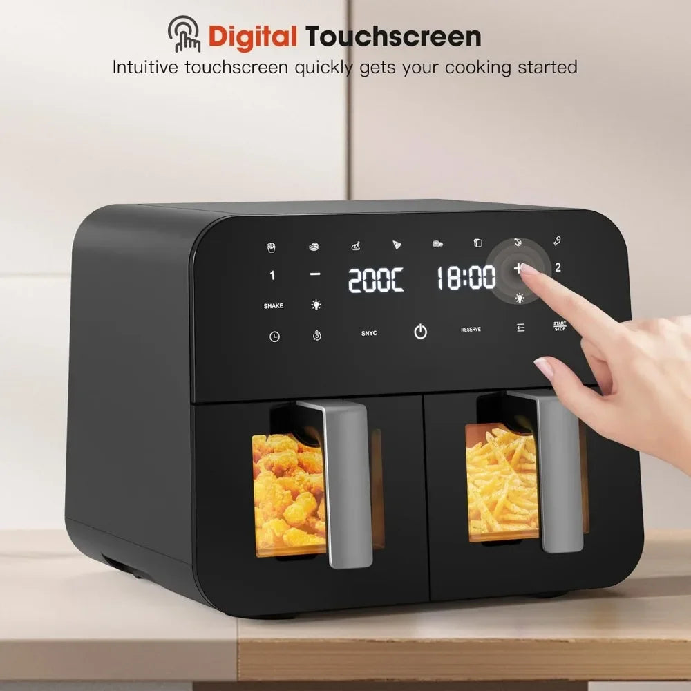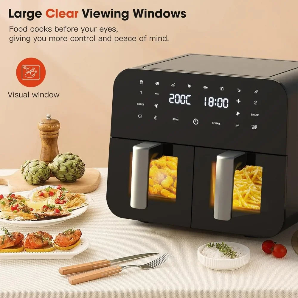 - 【User-Friendly Large View Windows】 Our dual air fryers with new visible window design and built-in indoor light help you monitor and observe cooking progress anytime, conveniently adjust cooking time and temperature without pulling out the basket.