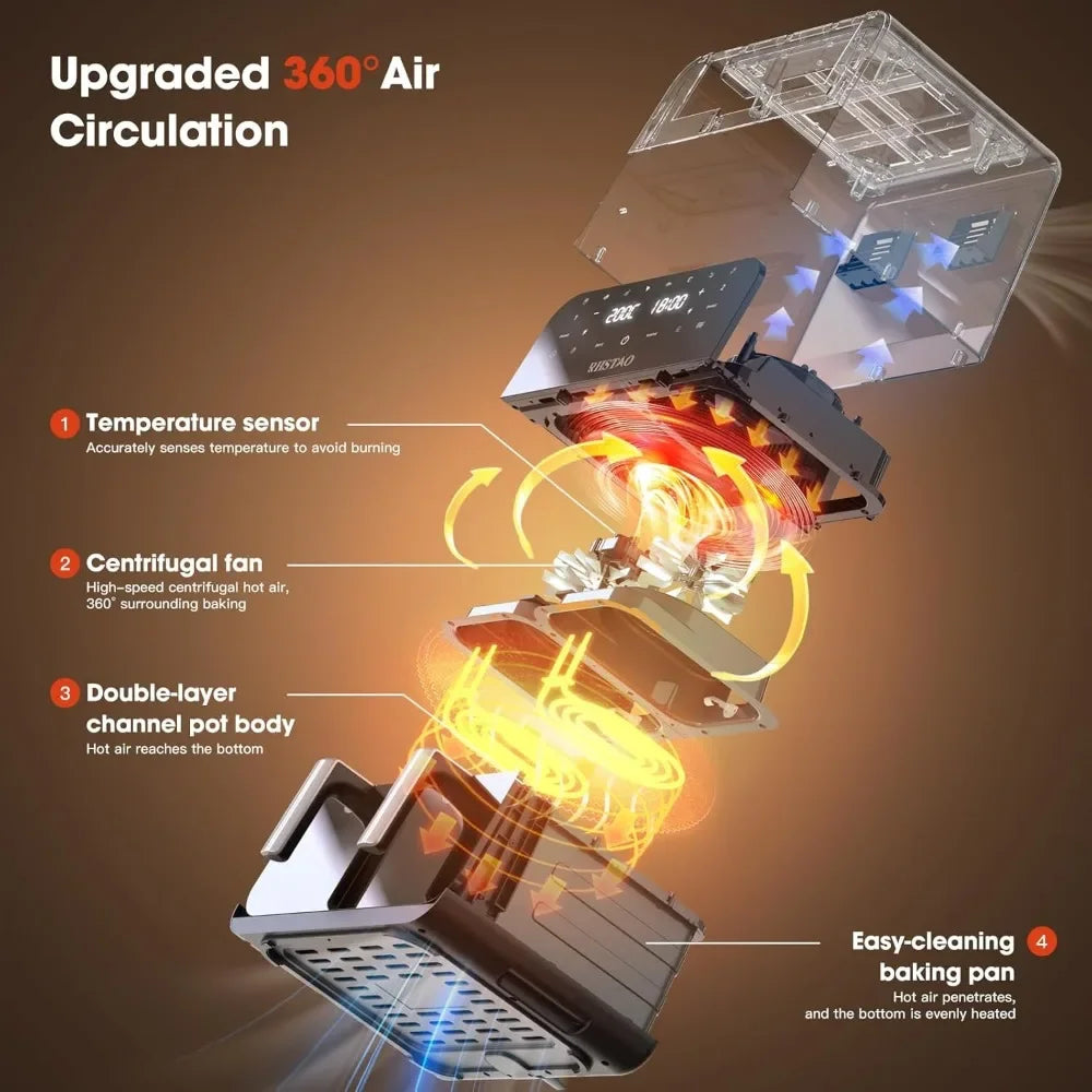 - 【Healthier Meal in Minutes】With industry-leading temperatures up to 400°F and 360 degree rapid heat circulation technology, this air fryer heats 40% faster than traditional oven, and up to 85%-90%. Help you prepare a quick healthy meal!