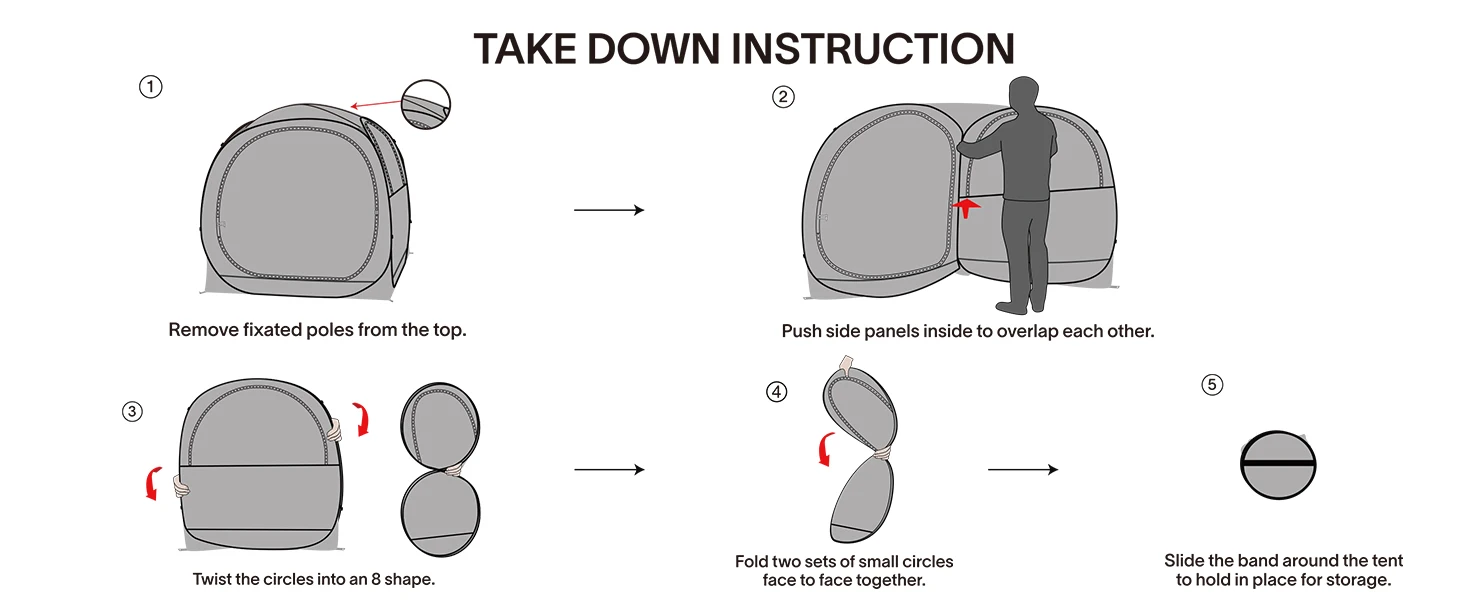 Sealed floor, durable & stable, sports tent is not easily blown away by the wind. Take down & fold into a compact carry bag size 39.4"x39.4"x1.6"H.