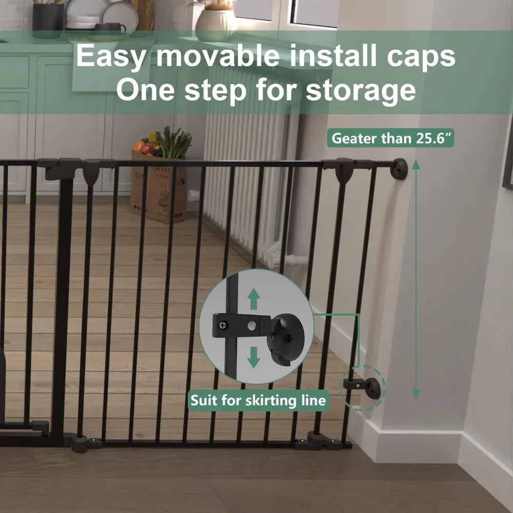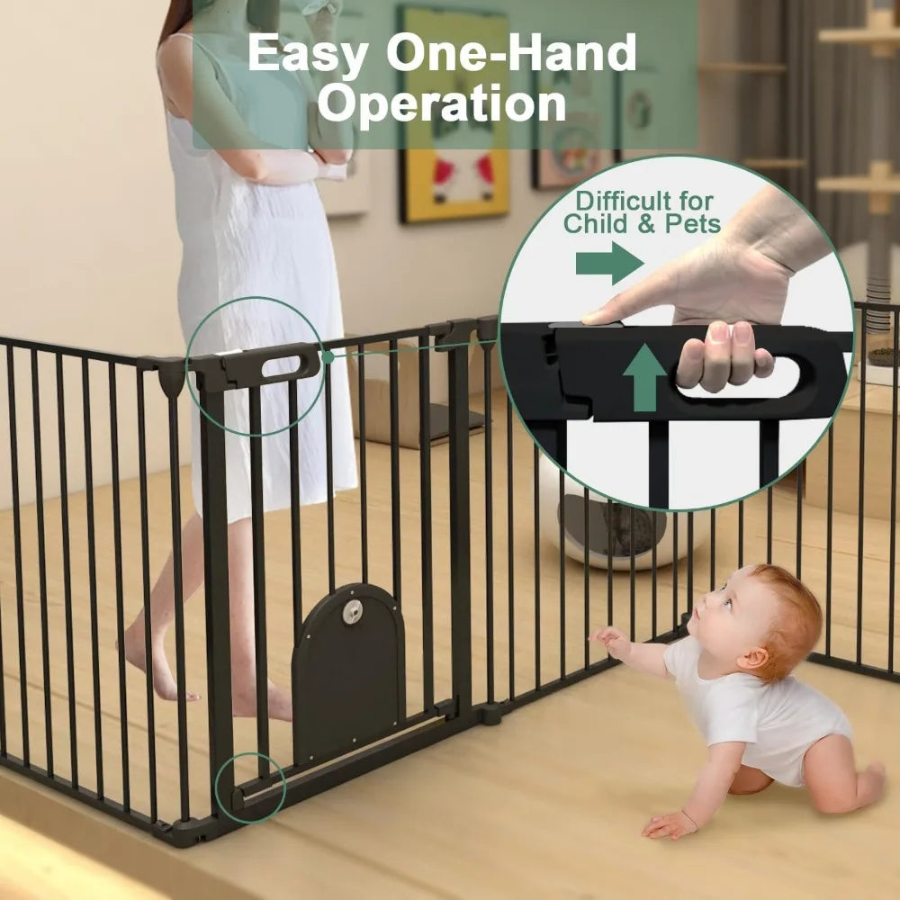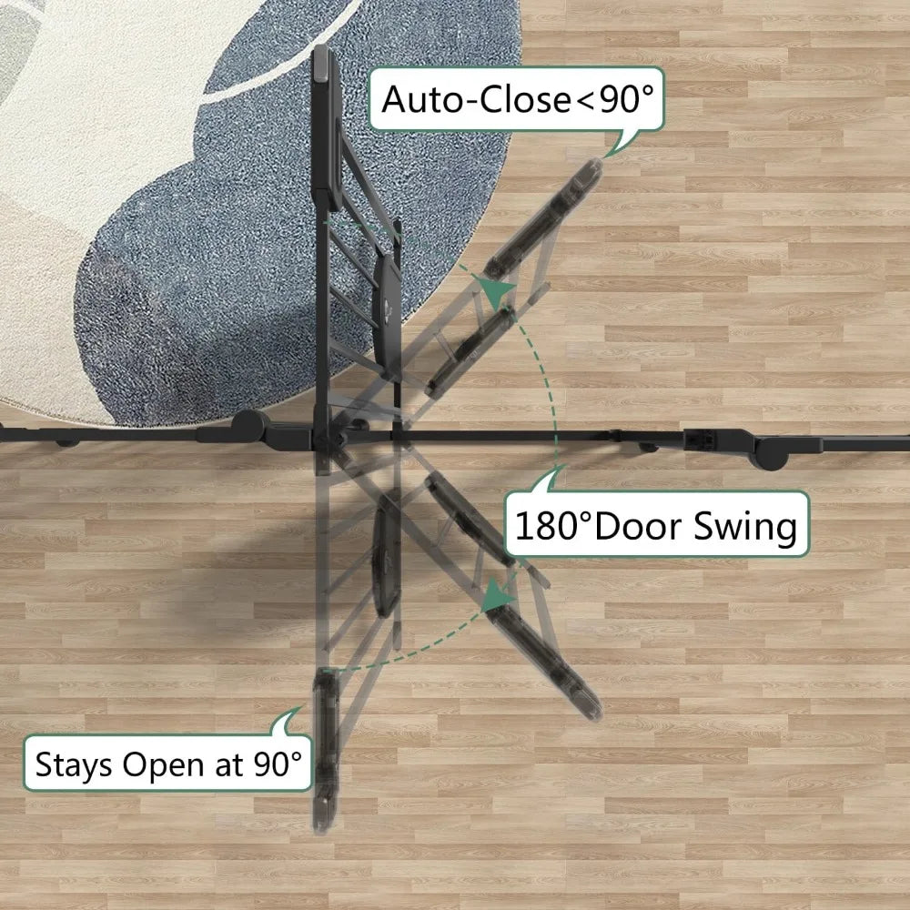 - 【Auto Close Baby Gate & Easy to Use】Double-lock system, The super long pet gate will be closed automatically due to gravity. The door can be swung in both directions, easy to operate the puppy gate with one hand. No worries about forgetting to lock the dog playpen.