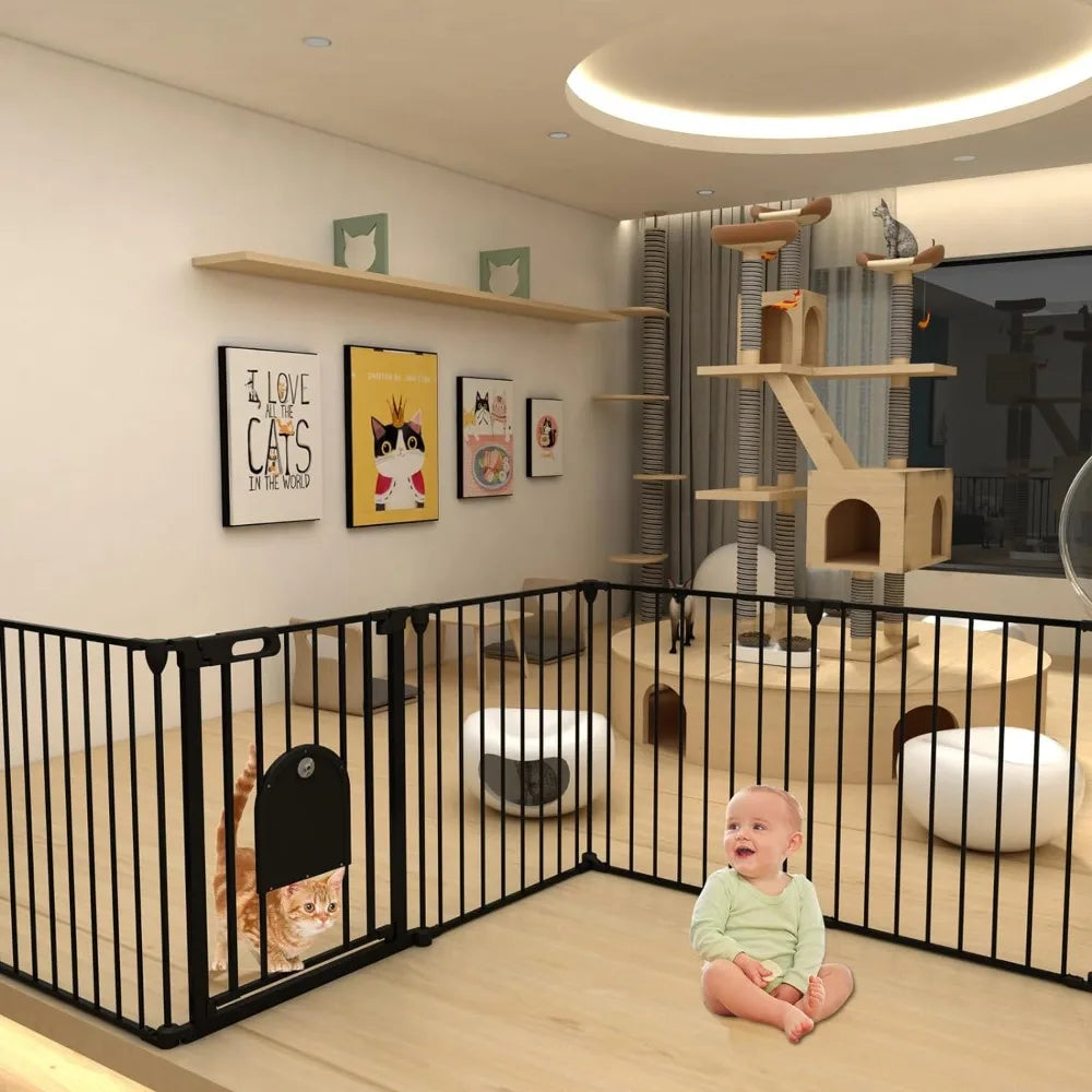 192" Extra Wide Baby Gate with Cat Door,: 192"W x 30"H