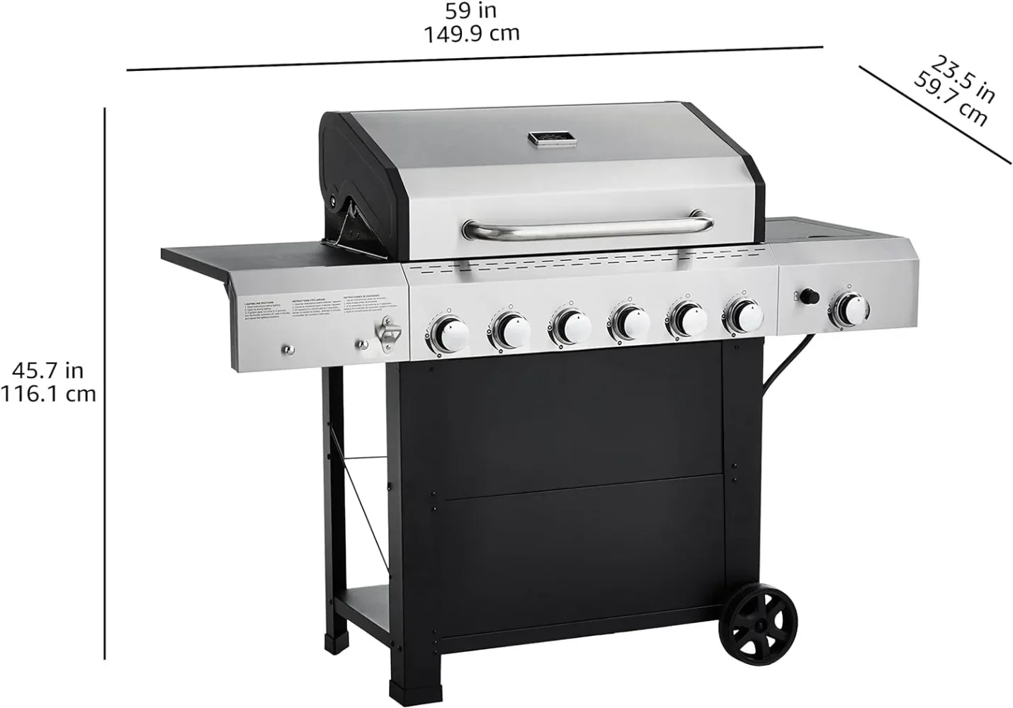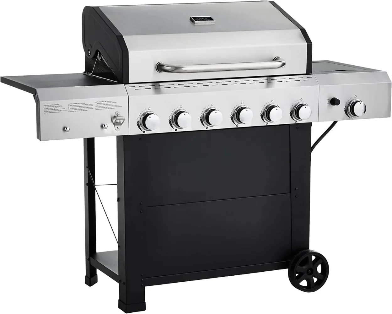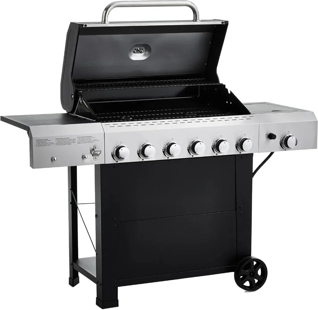Freestanding Gas Grill with Side Burner, 6 Burner (66,000 BTU) BBQ Grills