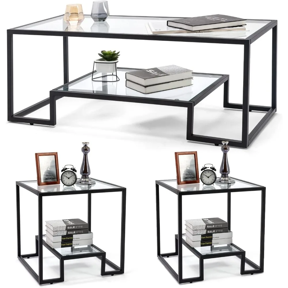 Glass Piece Table Set, Includes Coffee Table and End Tables