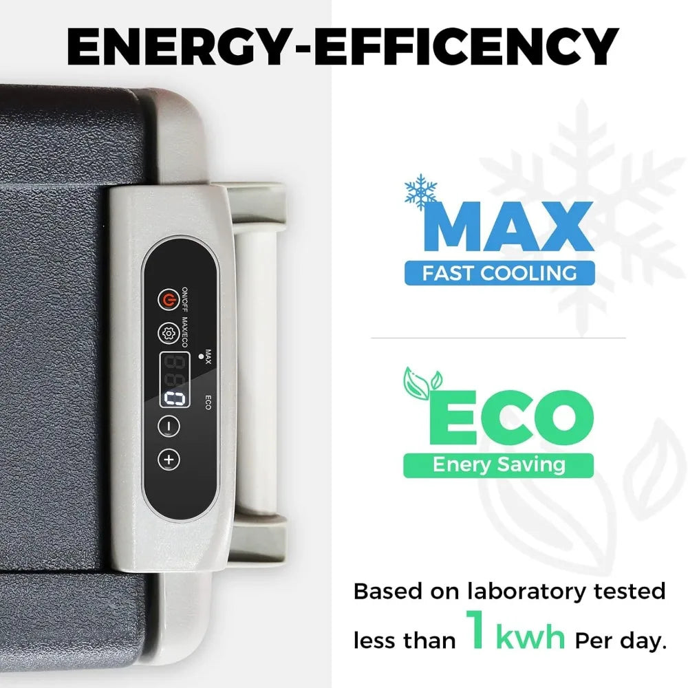 - 【Consumes Less Than 1kw.h Per Day & Fast Cooling】 12volt refrigerator has the function of energy saving. With the energy saving mode, the operating power is less than 45W for its intelligence cycle work. This portable fridge can cool down From 77℉ To 32℉ in15 Minutes.