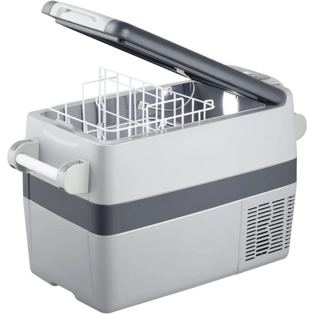 - 【Dual Storage Area & Large Capacity】 portable freezer is equipped with two-zone(fridge zone or freezer zone). This AJ40 compressor refrigerator is large enough to hold up to 58 cans of 355ml coke, which offers plenty of storage for beverages, fruits, and snacks, making it a great option for a family trip and fully meets the needs of truck drivers, boat owners, and campers to store seafood, snacks, and meat. (Free accessories:ac adapter,dc cable,handles,basket)