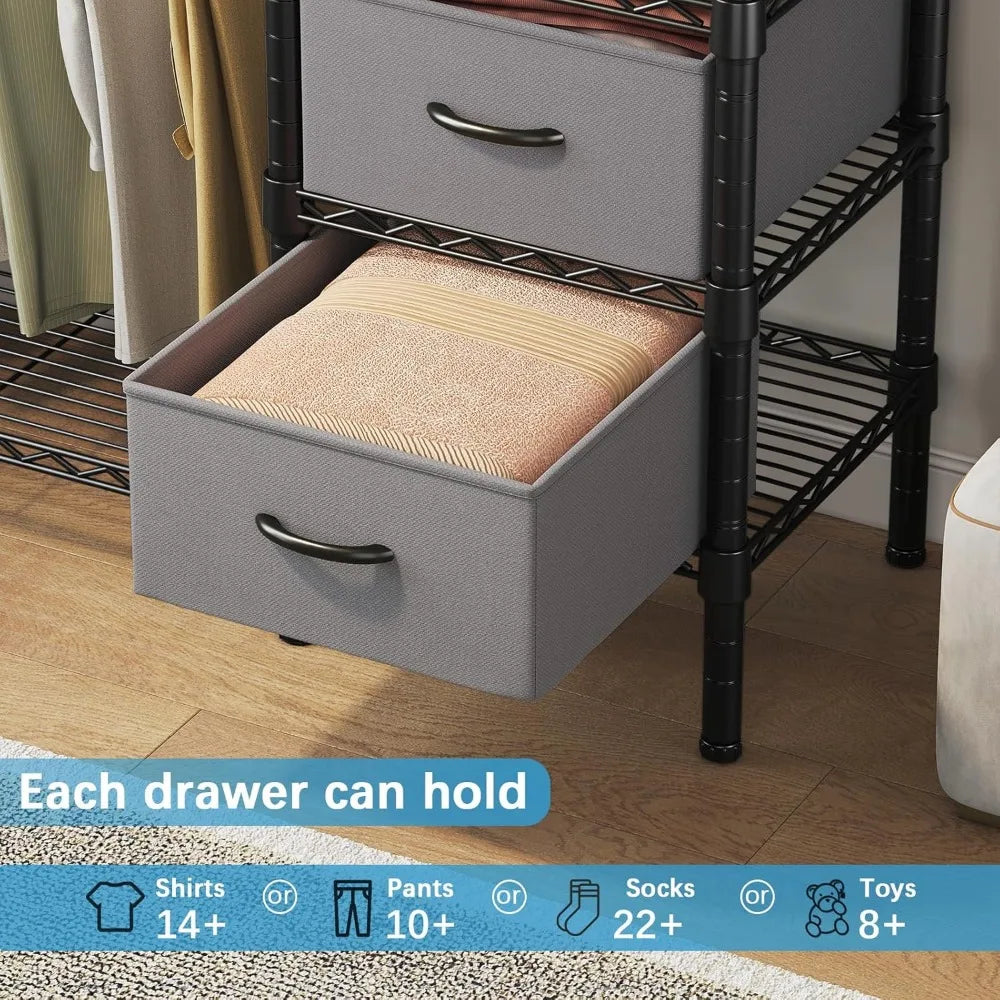 Heavy Duty Clothes Rack with Adjustable Shelf, 2 Storage Drawers, 2-Tier Shoes Racks,