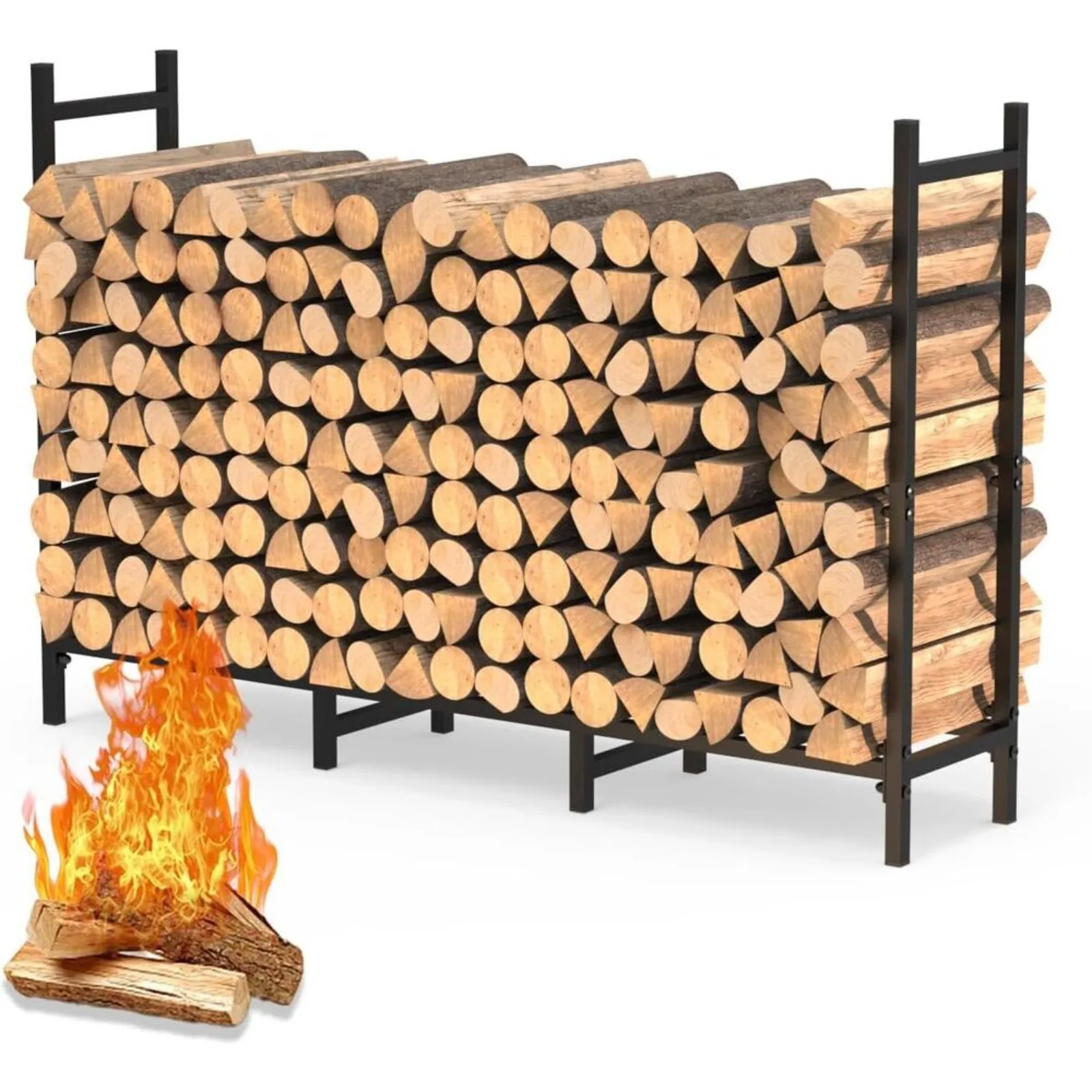 【Well-sturdy & Sustained】 4ft firewood storage holder is made of heavy tubular steel construction with a double black powder-coated finish, optimal durability, sturdy, rustproof and Weather fastness.