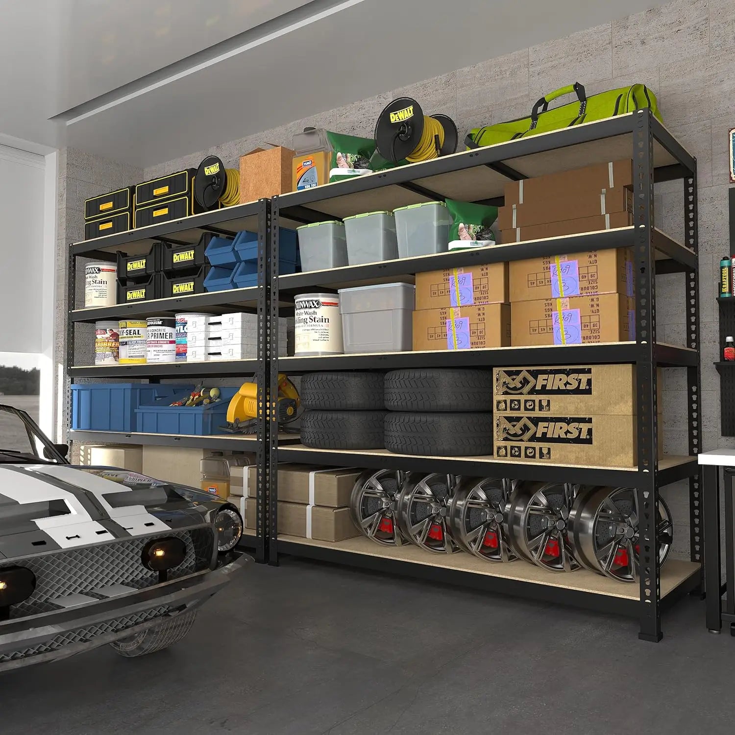 - 【ADJUSTABLE SHELVES】 These garage storage shelves feature high-quality thick MDF boards and thicken metal steel frame with black powder coating, the corner post rivet holes on the metal bracket are punched at 1/2" intervals so that they can be adjusted in 1-1/2" increments to accommodate items of different heights