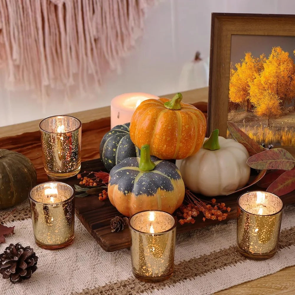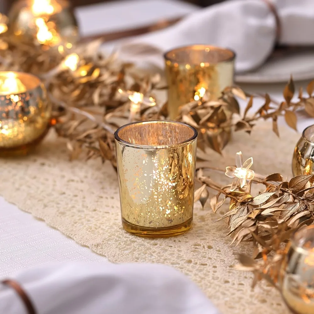 - MERCURY GLASS VOTIVES -- Timeless look: The mercury gold coating is more firm and not easy to fall off, will add romance and warmth to any table setting.