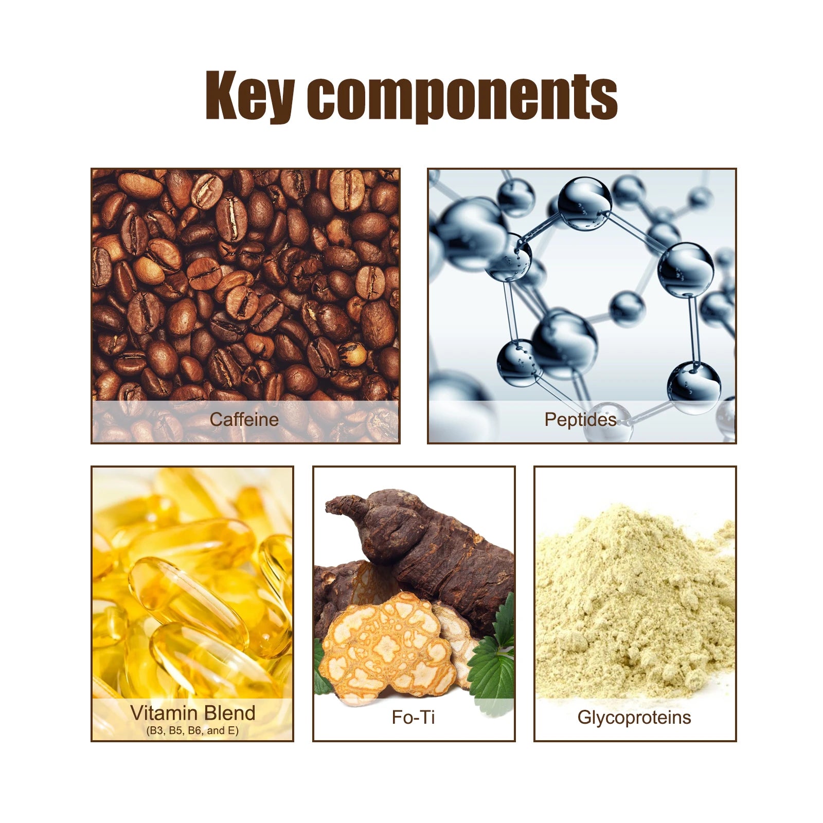 Ingredient: Caffeine, peptides, mixed vitamins