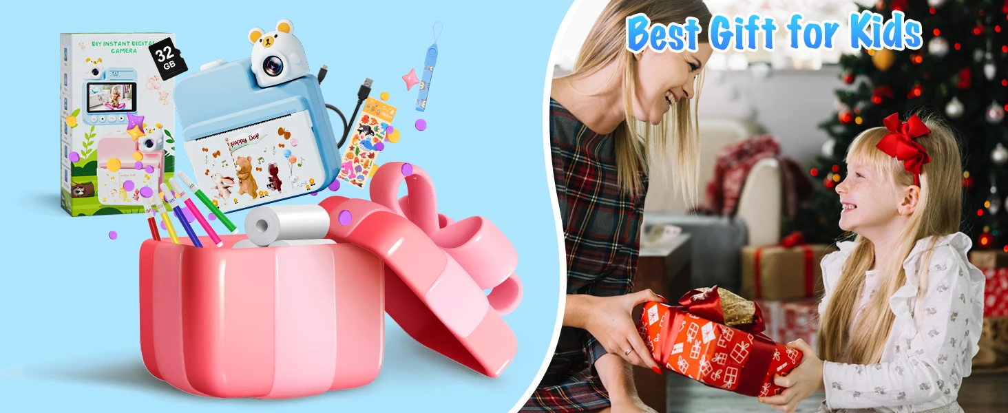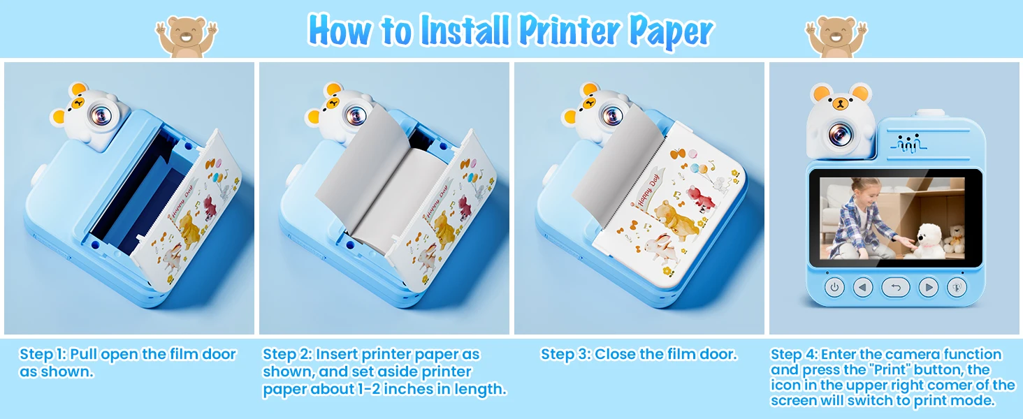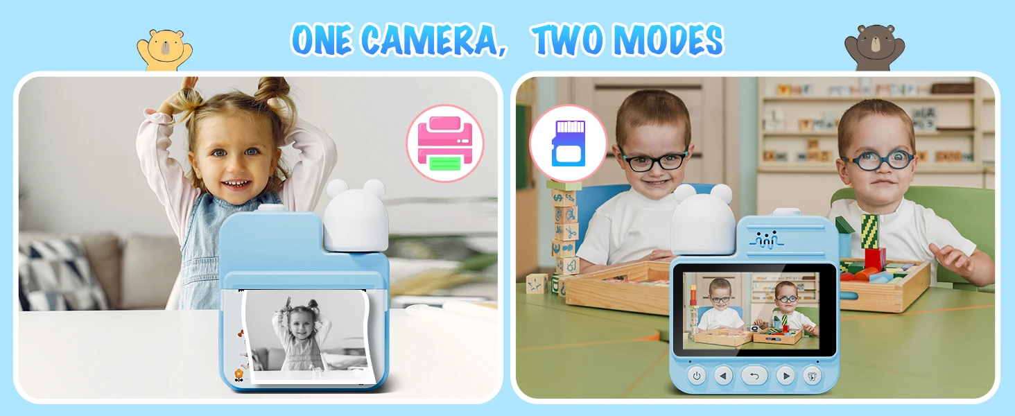 【Kids Instant Print Camera】 This baby camera print adopts thermal printing technology, allows kids to get their black and white photographs in seconds after shooting without toner (Including 3 Rolls of Paper Press).