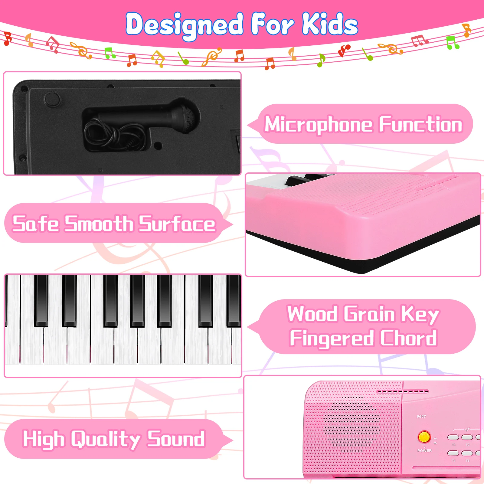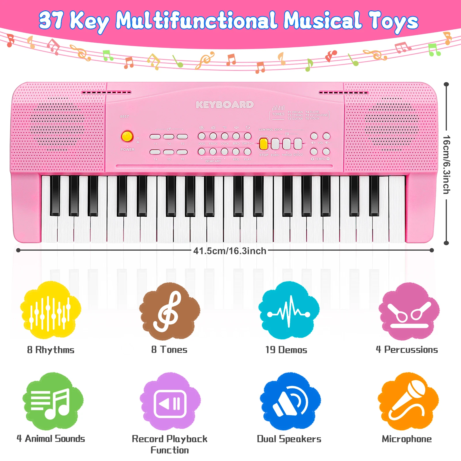 Kids Piano Keyboard 37 Keys Electronic Musical Multi Functional with Microphone USB Dual Speakers