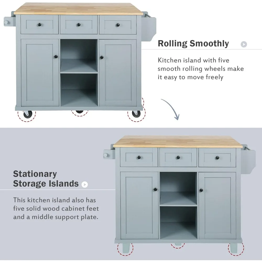 - Lockable & Rolling Kitchen Island: The kitchen island with five smooth-rolling wheels make it easy to move freely. 2 wheels have emergency lock brakes. Brake design allows the wheels to be locked in a stable position at will.