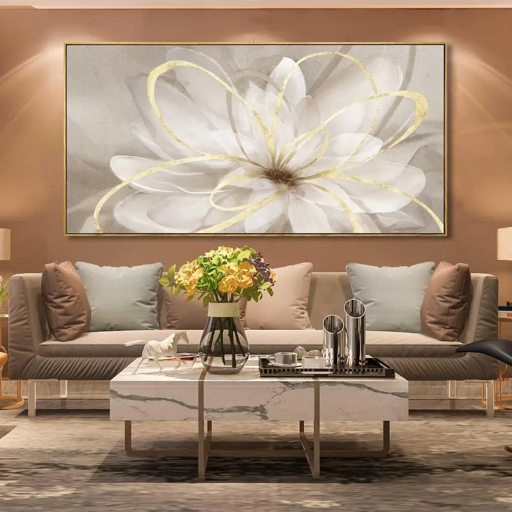 Large Canvas Wall Art Living Room Decors Gold Walls Decor Artwork White Floral 30x60