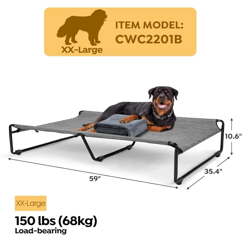 | Material | Textilene Mesh, Flannel Dog Blanket, Metal, Non-Slip Feet |