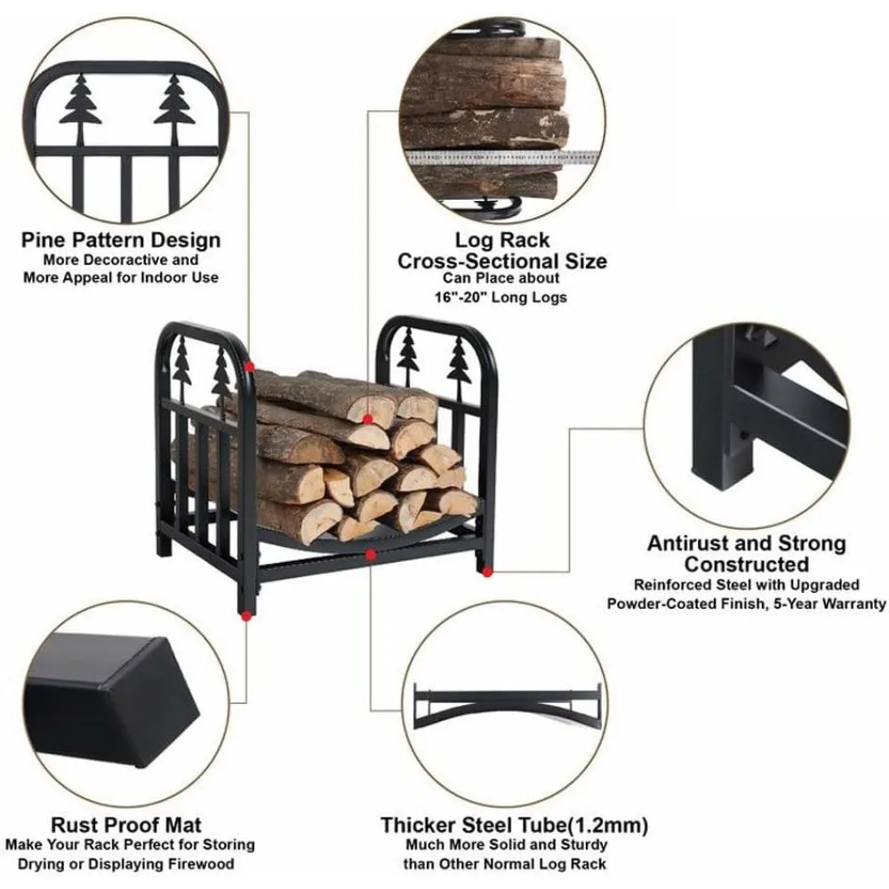 - Log Store: Wood rack for firewood features a compact design that looks great inside next to a wood burning stove or indoor fireplace and can also be used outside by the backyard or patio fire pit.