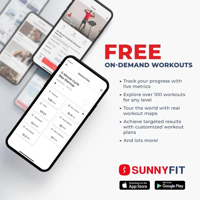 - SMART FITNESS: Cycle along with Sunny Health & Fitness expert trainers on the Sunny Health & Fitness SunnyFit APP. Connect your preferred mobile device through Bluetooth and view your performance metrics in real time.