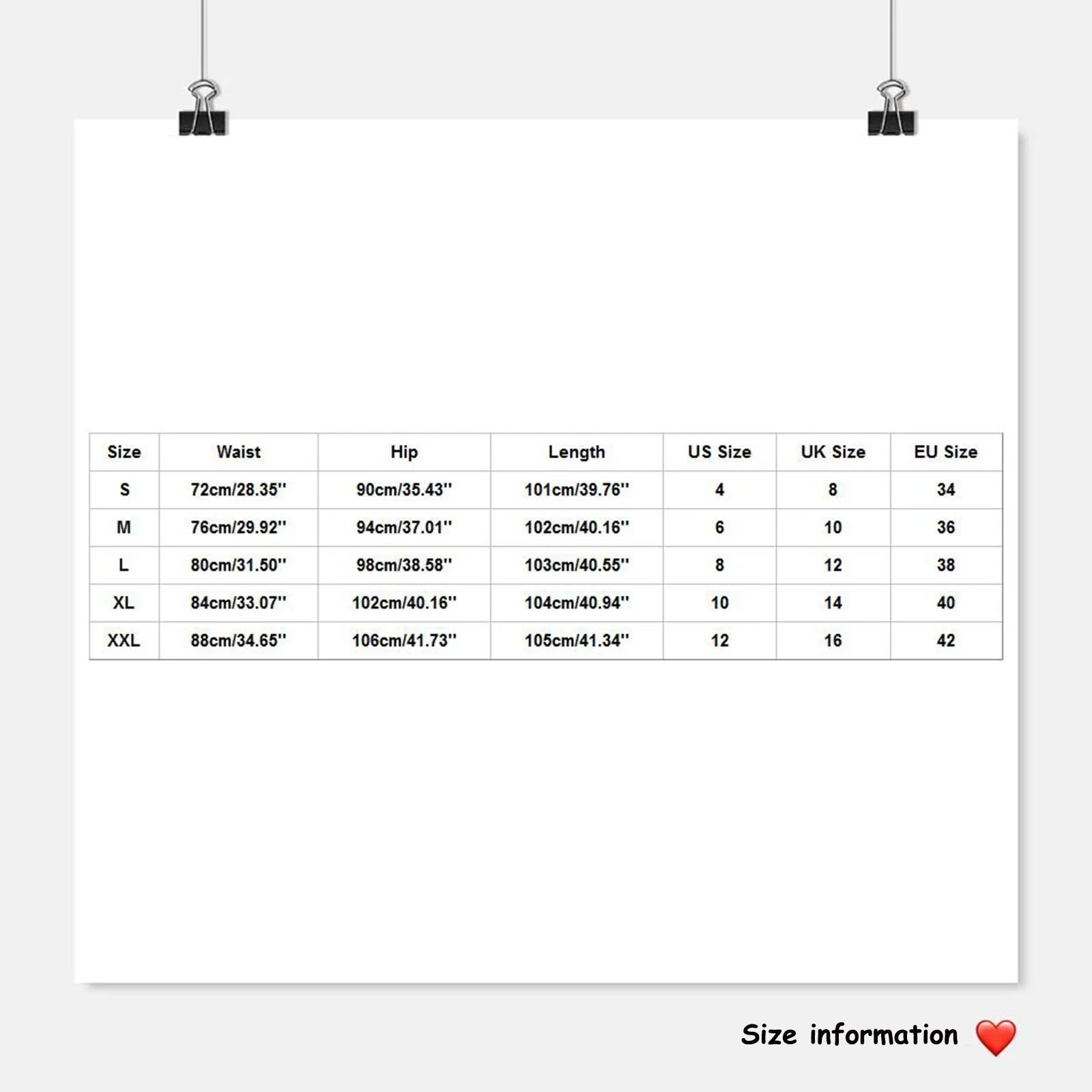 | Size:XL | Waist:84cm/33.07'' | Hip:102cm/40.16'' | Length:104cm/40.94'' | US Size:10 | UK Size:14 | EU Size:40 |