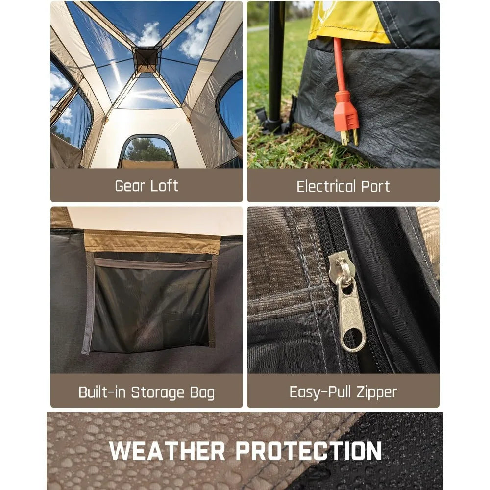 - [60 Seconds Set Up] You can set up the instant tent in under 60 seconds, thanks to its pre-installed poles and seamless construction. The quick and easy installation makes it the ideal companion for beginner campers, allowing you and your family to enjoy more time with nature