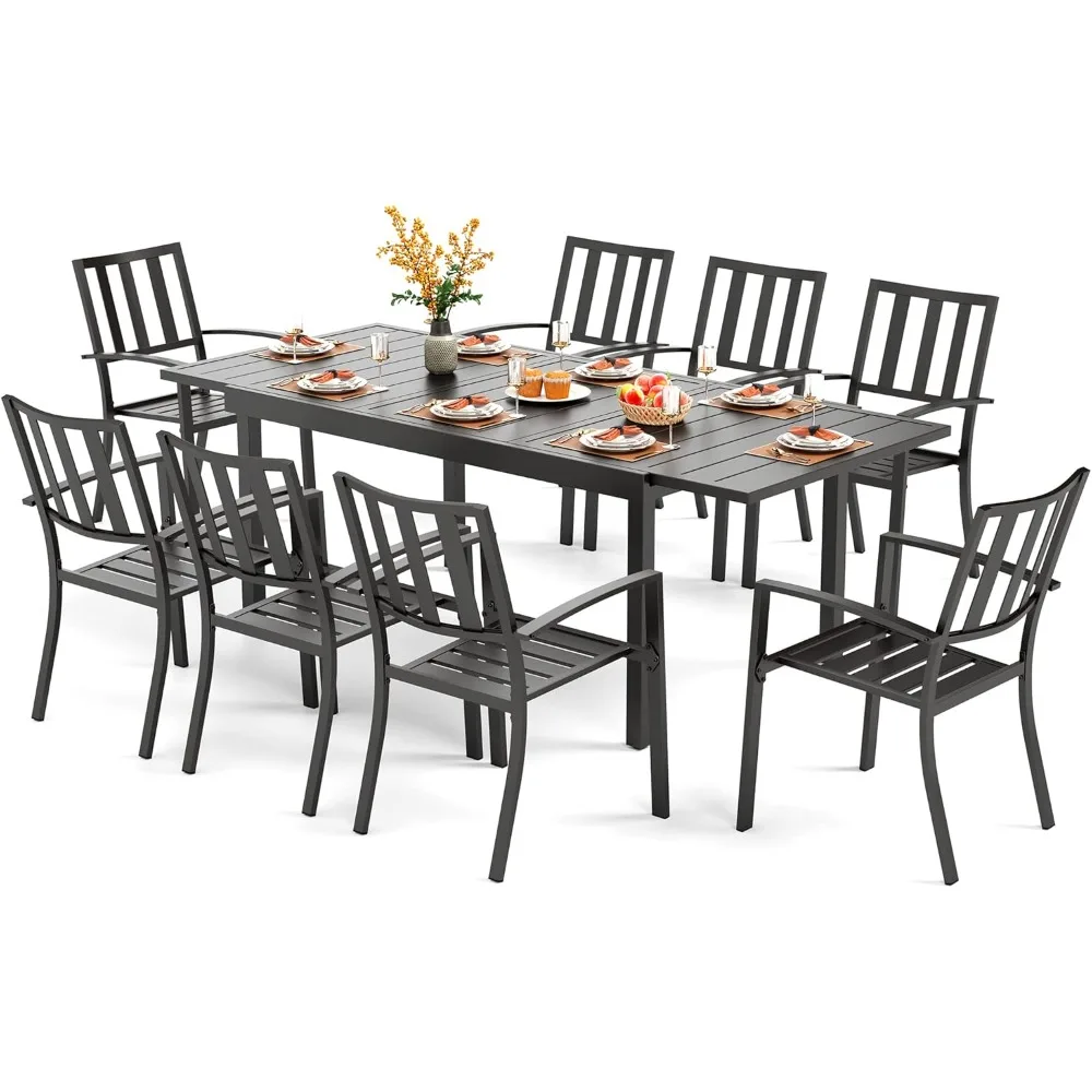 - Elegant Design: The 9-piece outdoor dining table set beautifully transforms any patio, porch, balcony or terrace into an elegant dining room with its superior quality and deep comfort feeling. It matches any decor and is suitable for outdoor and indoor use.
