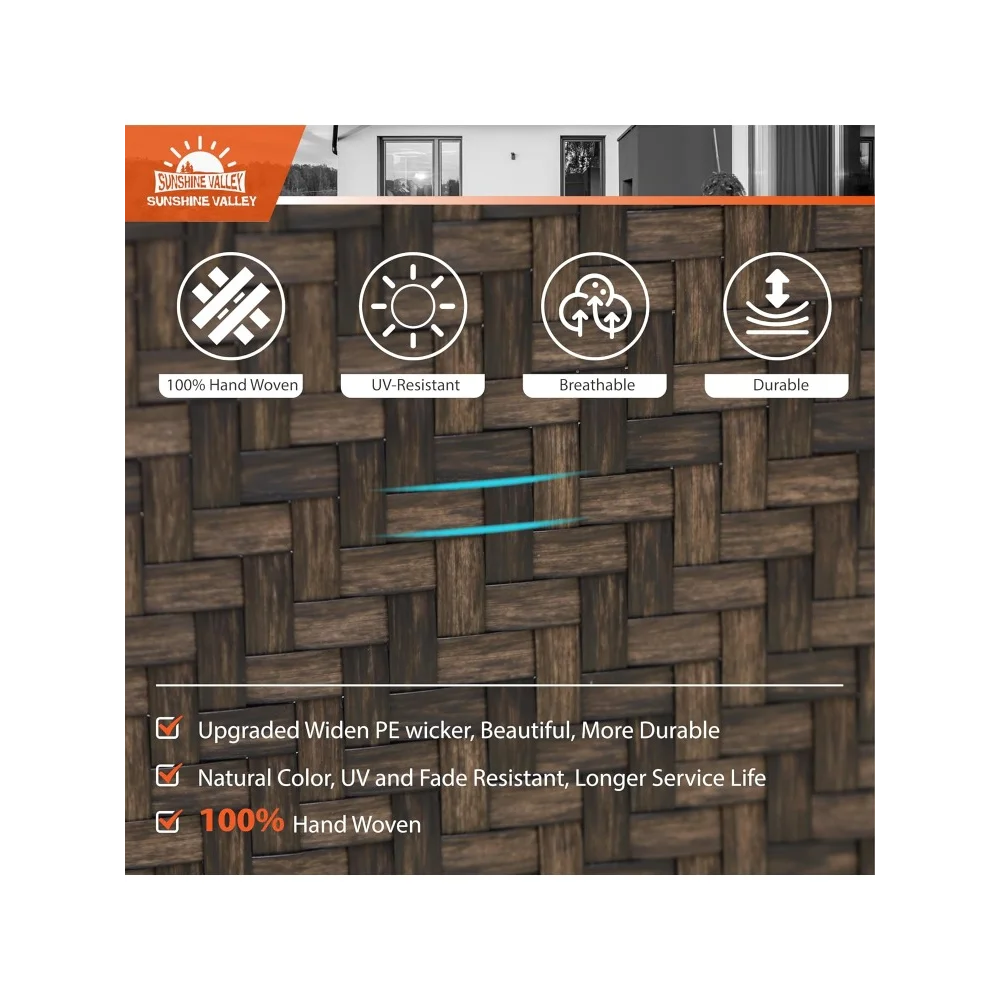 - 【100% Hand-Woven Wicker】This outdoor dining table and chair set is made by skilled craftsmen and uses weather-resistant brown flanged polyethylene wicker. Wicker has high density, UV-resistant, anti-aging, and fade-resistant, and has a longer service life.