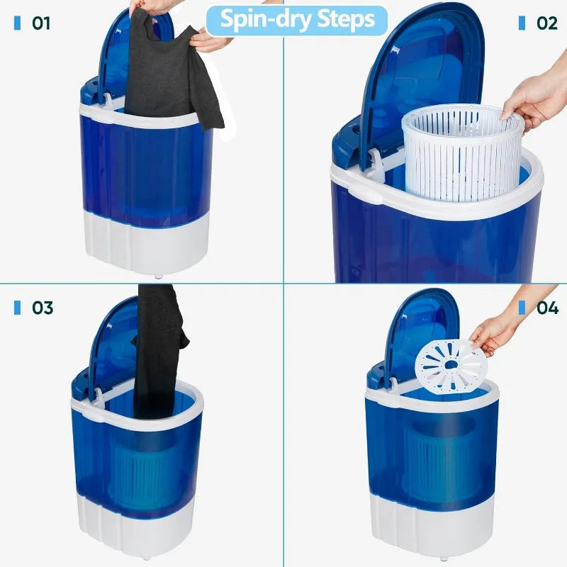- 【Compact & Powerful】-- ZENY 5.7 Lbs Mini Washing Machine is portable and compact . Meanwhile it's with full functionality of efficient washing and spin-drying to meet your laundry needs. Perfect for dorms, apartments, condos, motor homes, RV, camping and so on.