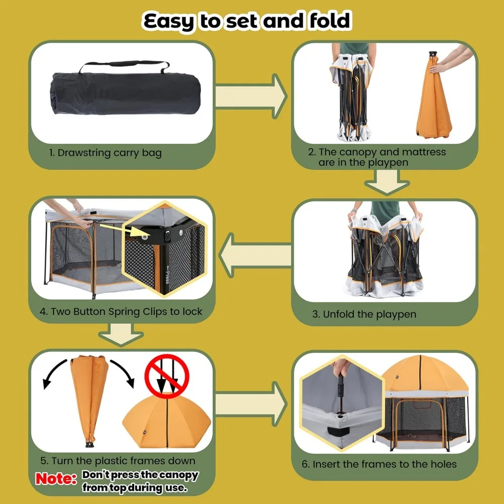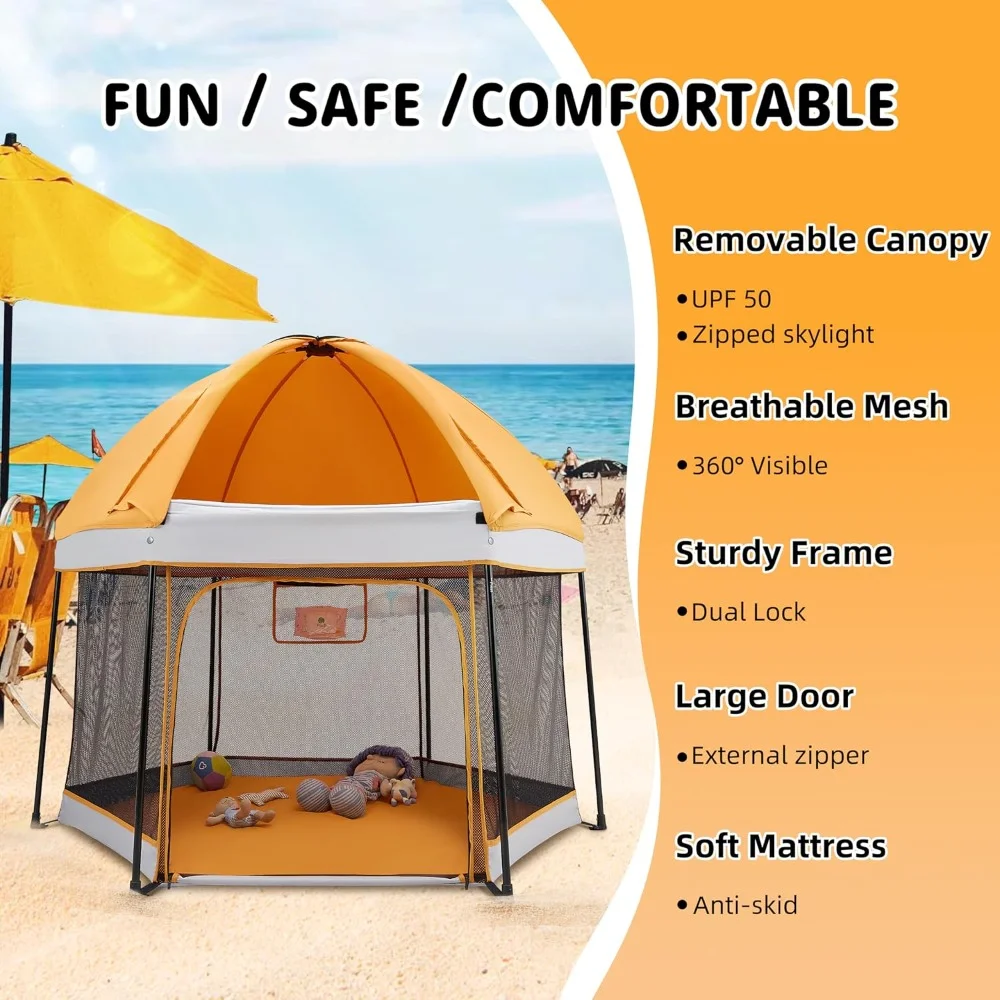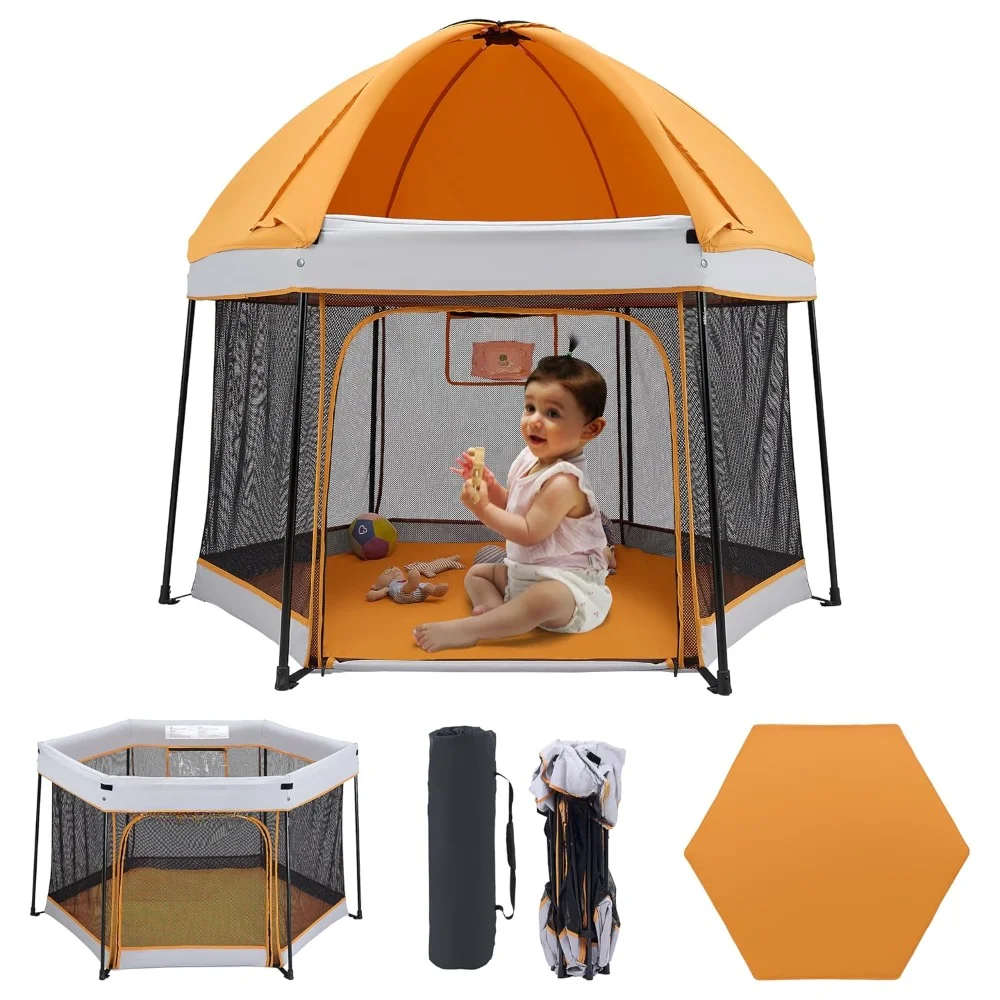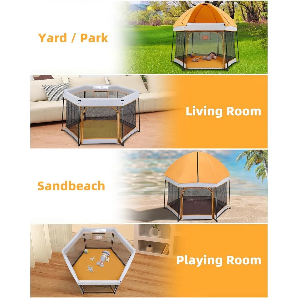 Portable Playpen with Canopy and Mattress Outdoor and Indoor 54"