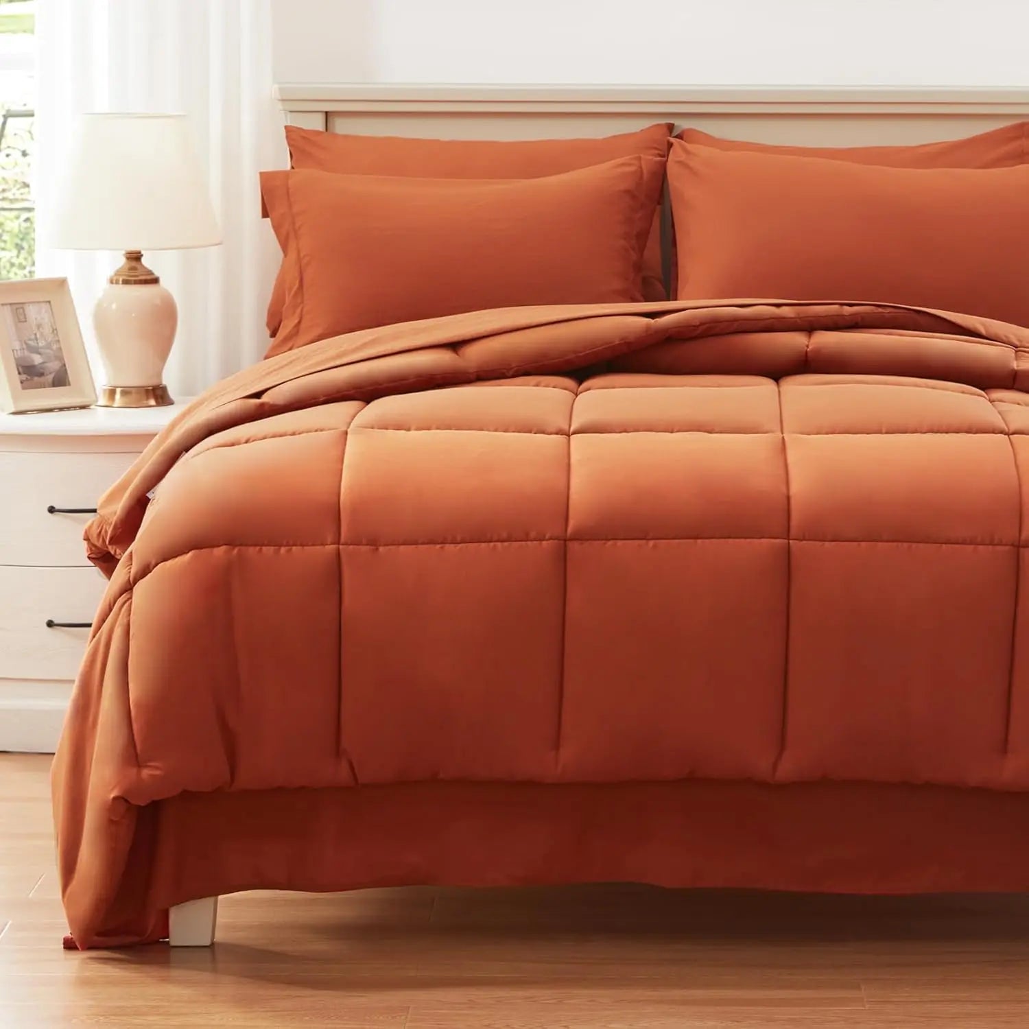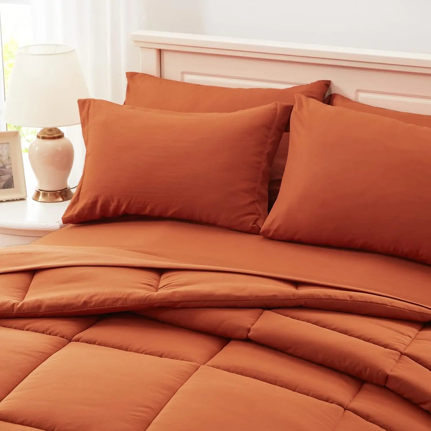 Queen Comforter Set 7 Piece, Burnt Orange Bed in a Bag with Sheets, All Season Sets
